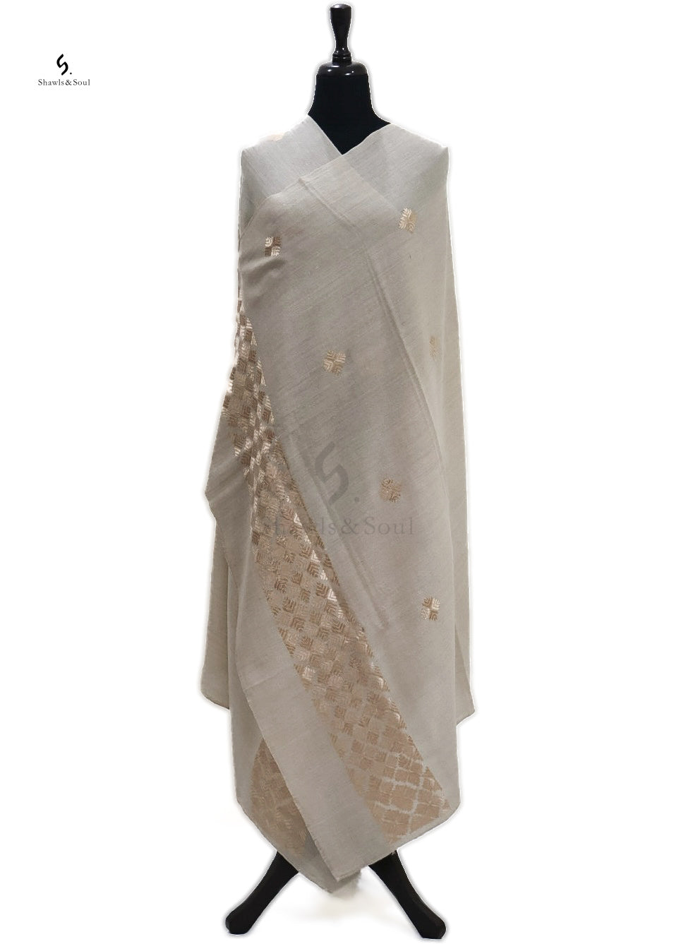 Explore timeless artistry with cross stitch embroidered wool shawls.