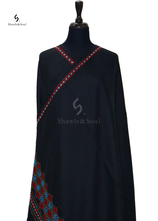 Explore timeless artistry with cross stitch embroidered wool shawls.