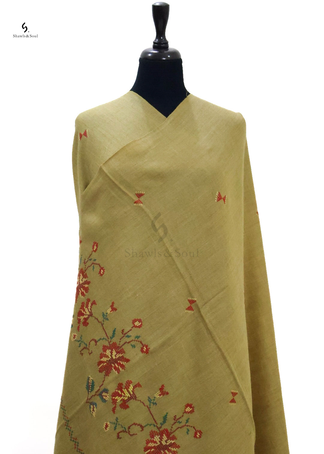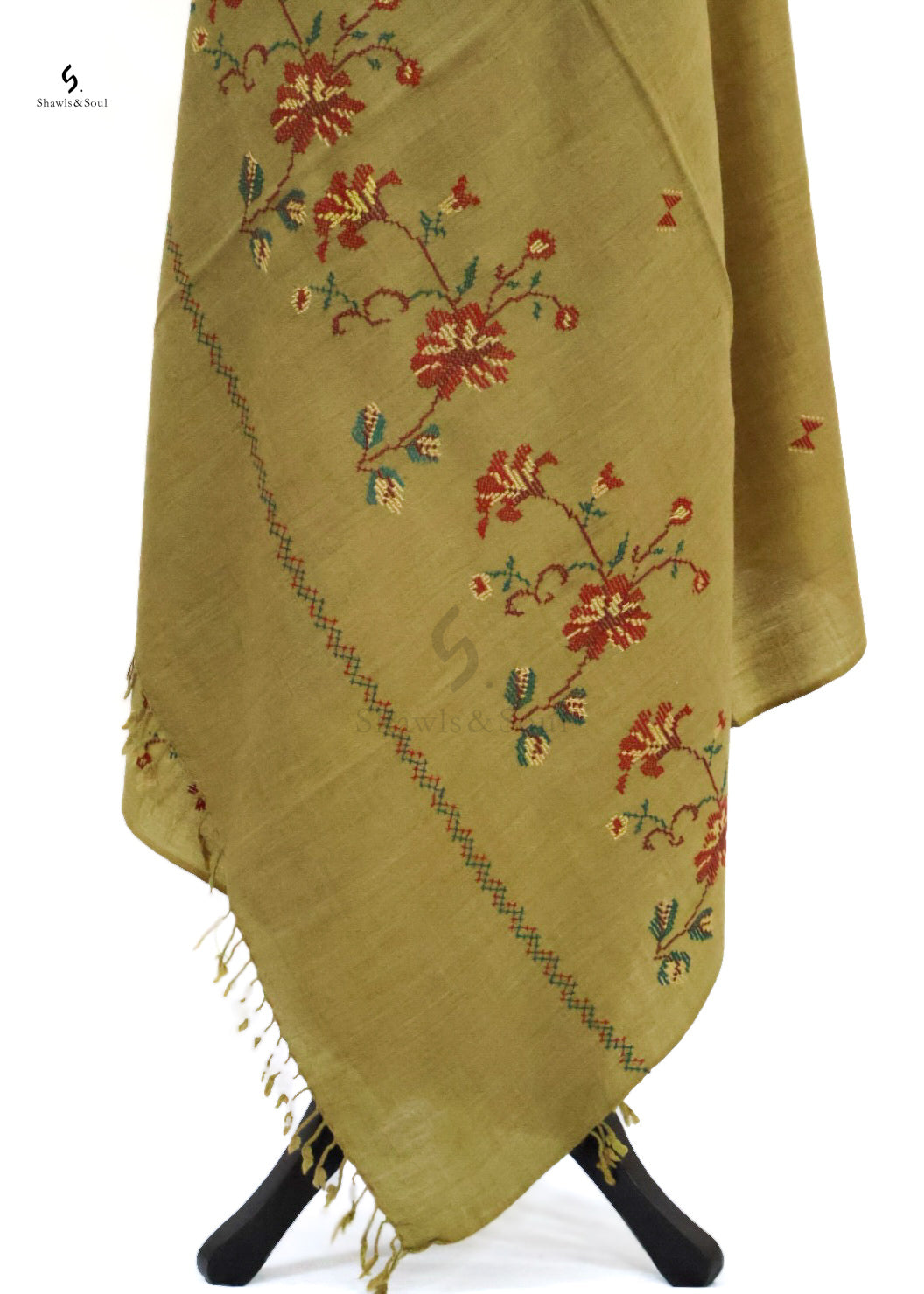 Amber Shawl showcases exquisite cross stitch embroidery delicately crafted with premium wool. This elegant piece blends artistry and quality, offering a beautiful design that enhances your collection without exceeding your budget. Ideal for those who appreciate refined craftsmanship and timeless appeal.