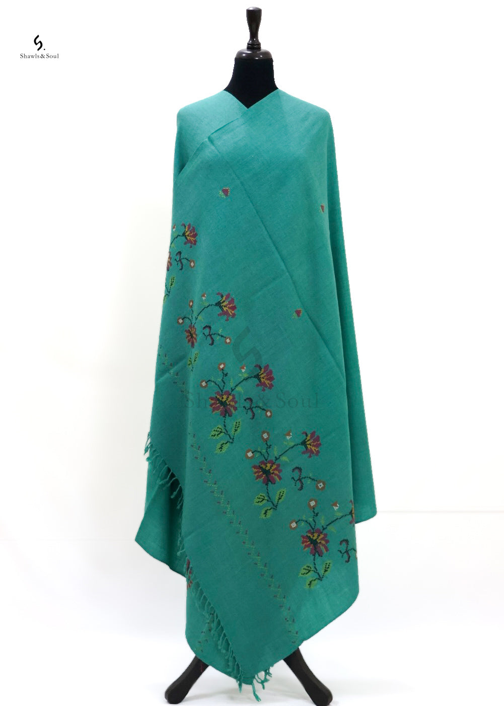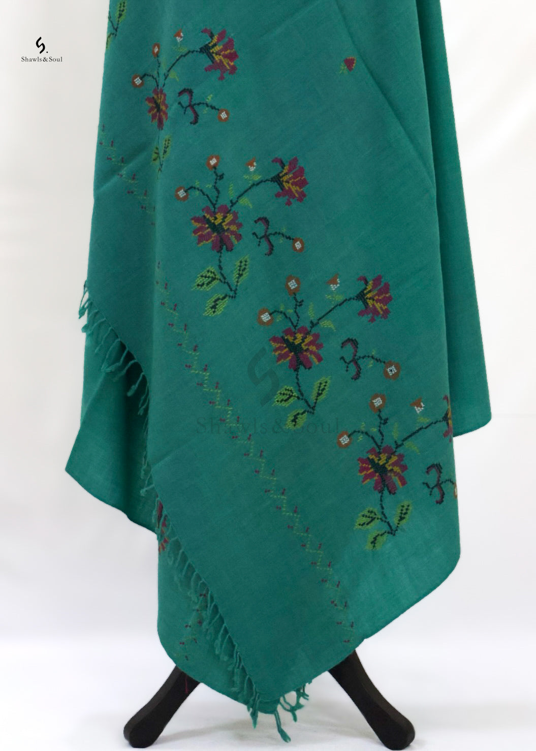 Amber Shawl showcases exquisite cross stitch embroidery delicately crafted with premium wool. This elegant piece blends artistry and quality, offering a beautiful design that enhances your collection without exceeding your budget. Ideal for those who appreciate refined craftsmanship and timeless appeal.