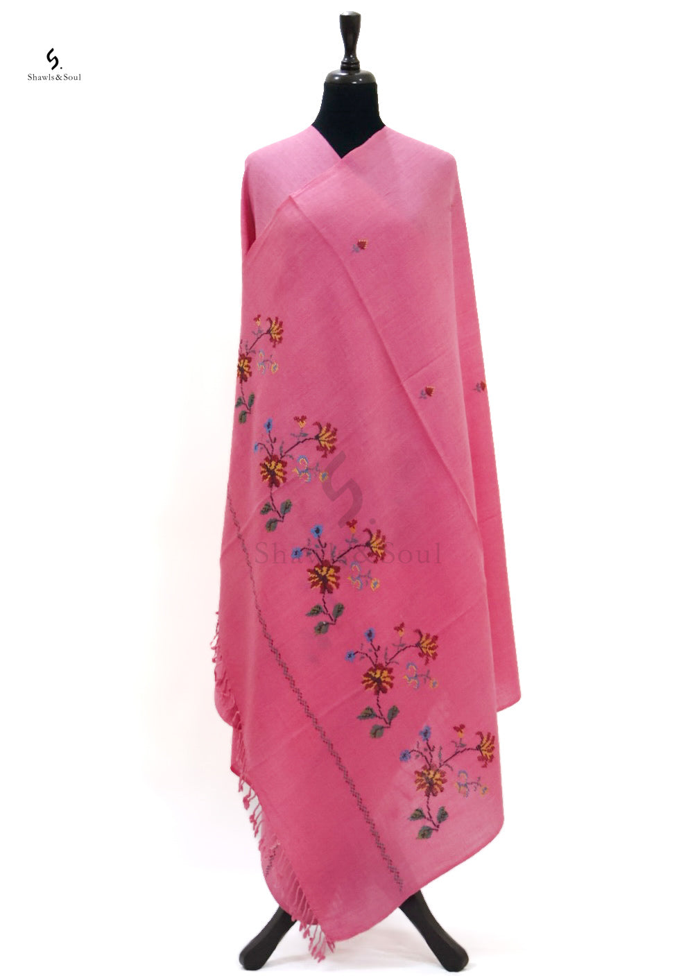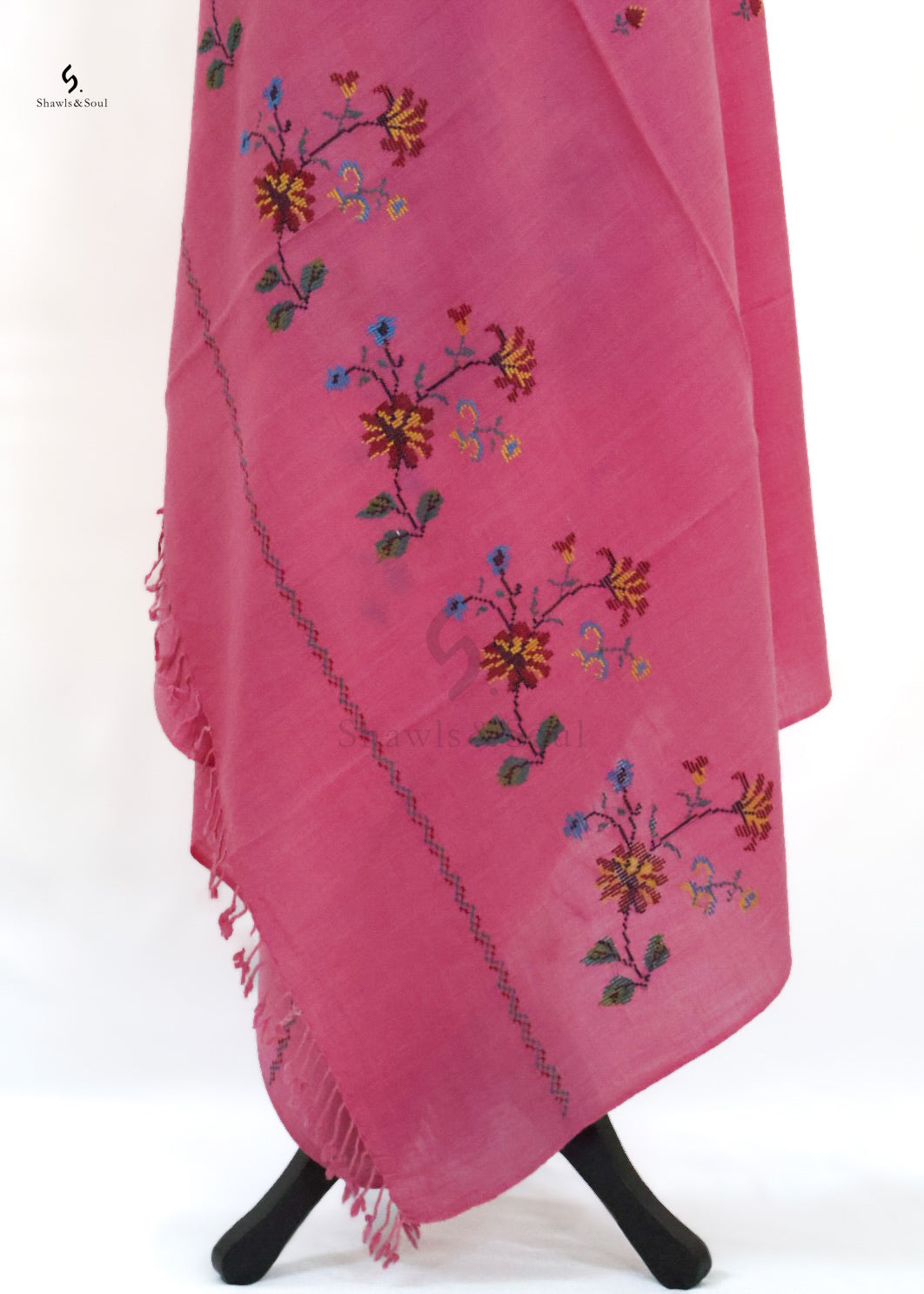 Amber Shawl showcases exquisite cross stitch embroidery delicately crafted with premium wool. This elegant piece blends artistry and quality, offering a beautiful design that enhances your collection without exceeding your budget. Ideal for those who appreciate refined craftsmanship and timeless appeal.