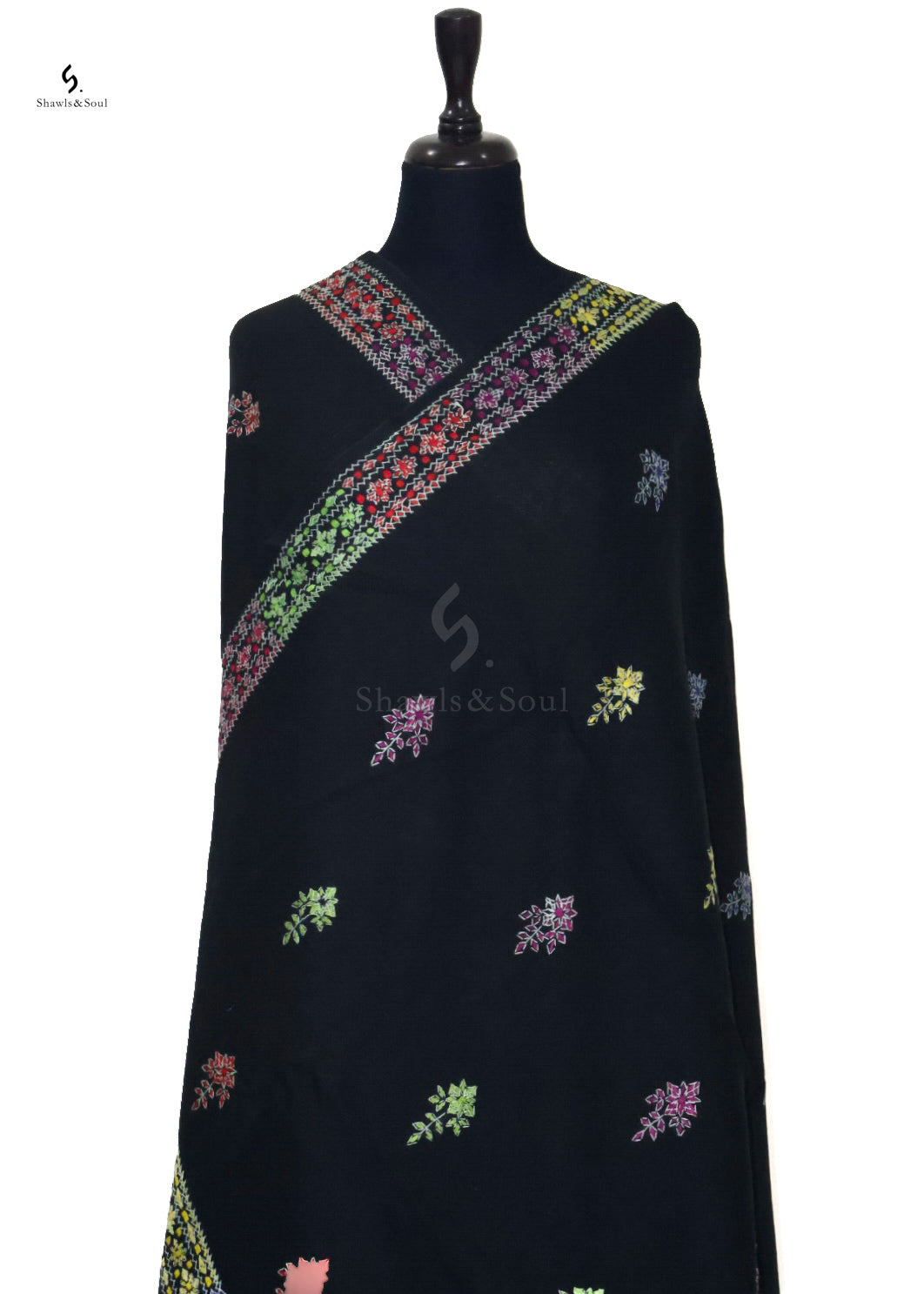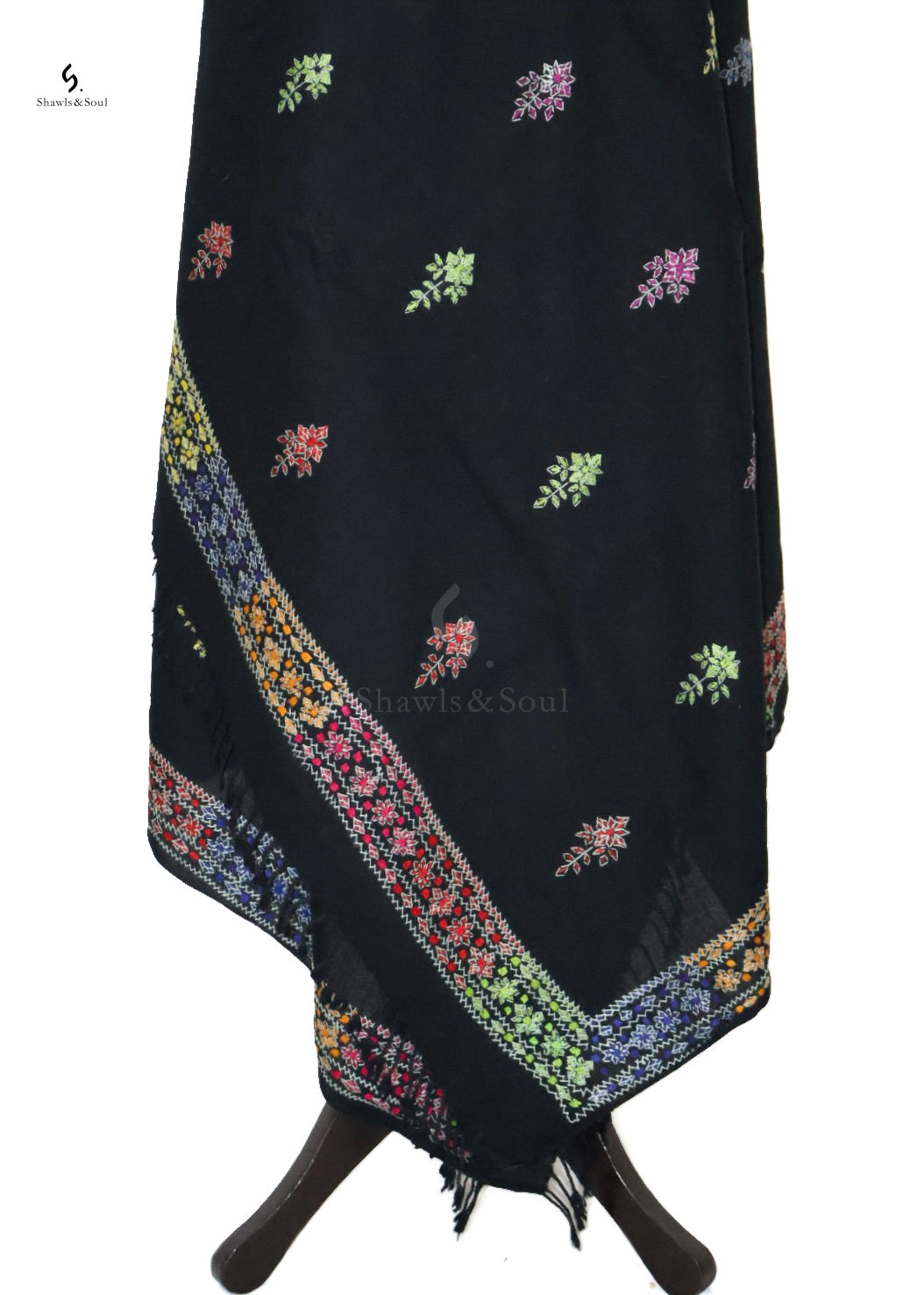Experience the elegance of the Balochi Naaz, crafted from soft wool and adorned with exquisite hand-embroidered Balochi patterns. This black shawl offers both warmth and sophistication, making it a perfect accessory for cooler days.