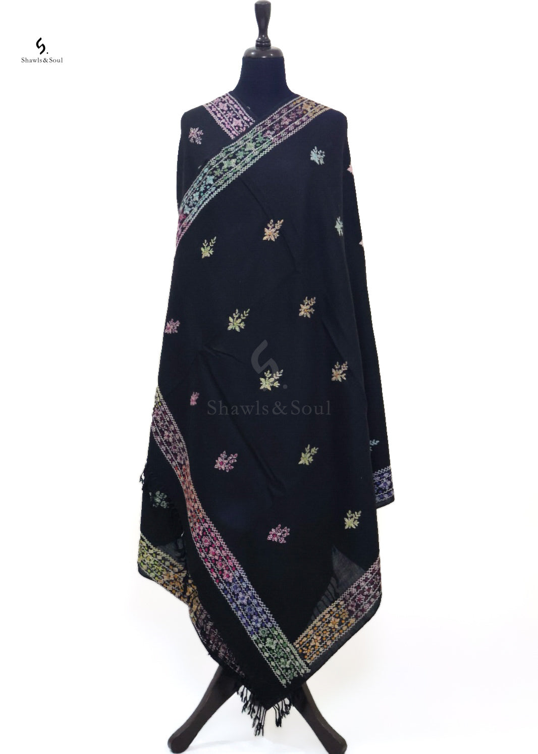 Experience the elegance of the Balochi Naaz, crafted from soft wool and adorned with exquisite hand-embroidered Balochi patterns. This black shawl offers both warmth and sophistication, making it a perfect accessory for cooler days.