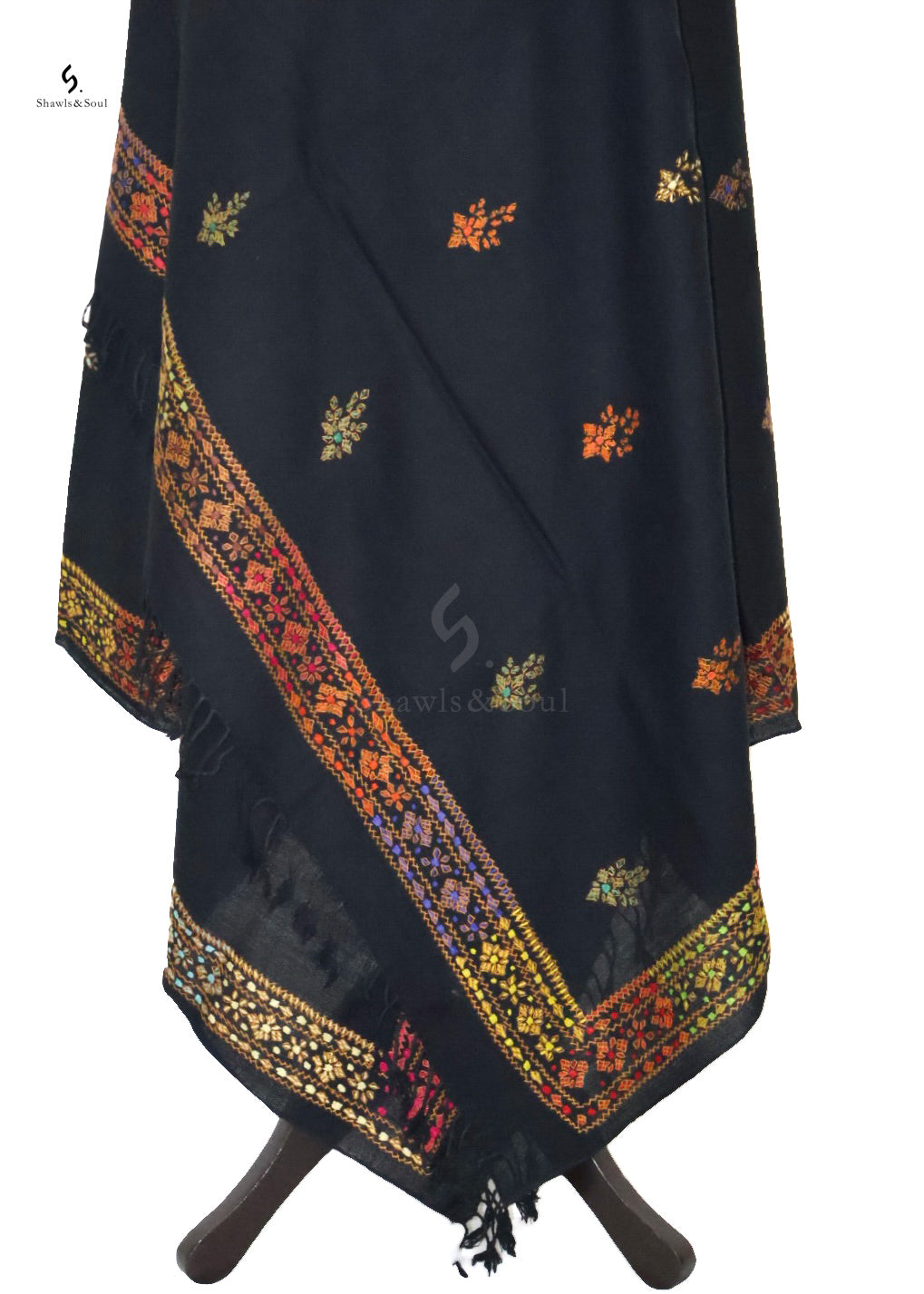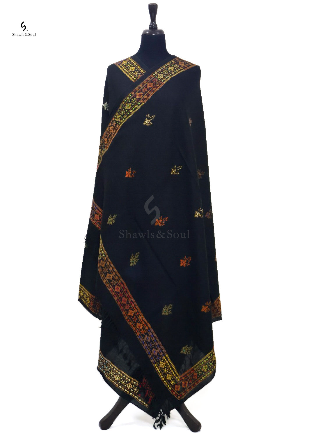 Experience the elegance of the Balochi Naaz, crafted from soft wool and adorned with exquisite hand-embroidered Balochi patterns. This black shawl offers both warmth and sophistication, making it a perfect accessory for cooler days.