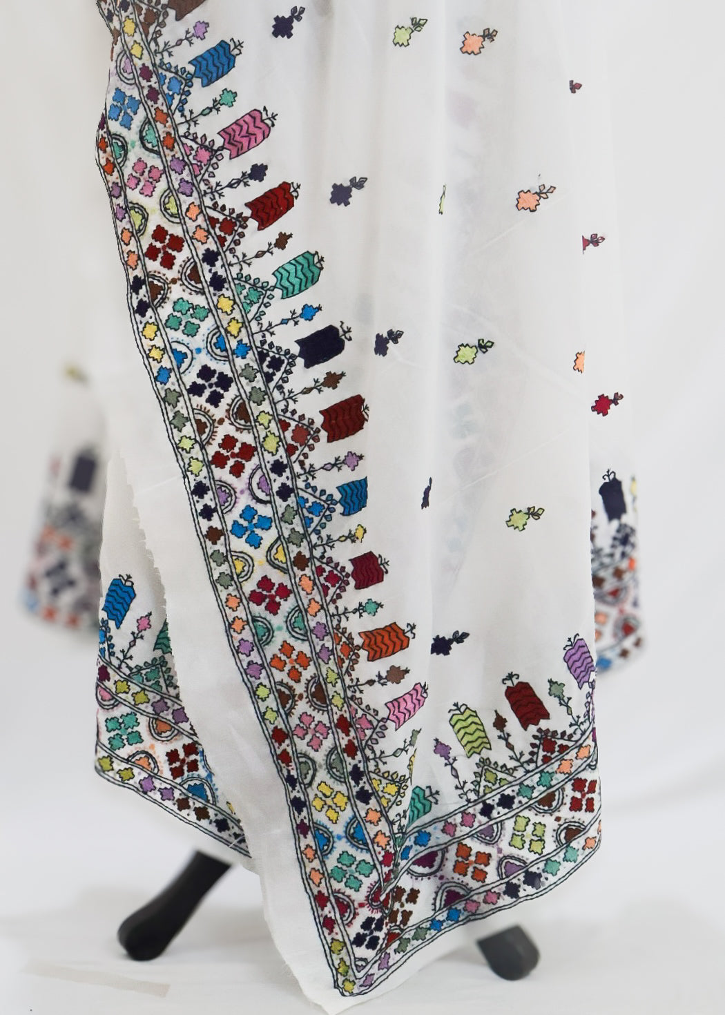 The Balochi Taj is a premium summer shawl that showcases intricate Balochi embroidery, reflecting rich cultural heritage. Designed for elegance and comfort, this lightweight shawl adds a refined touch to your summer wardrobe while keeping you cool and stylish.