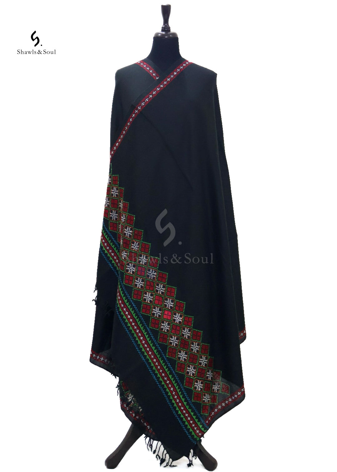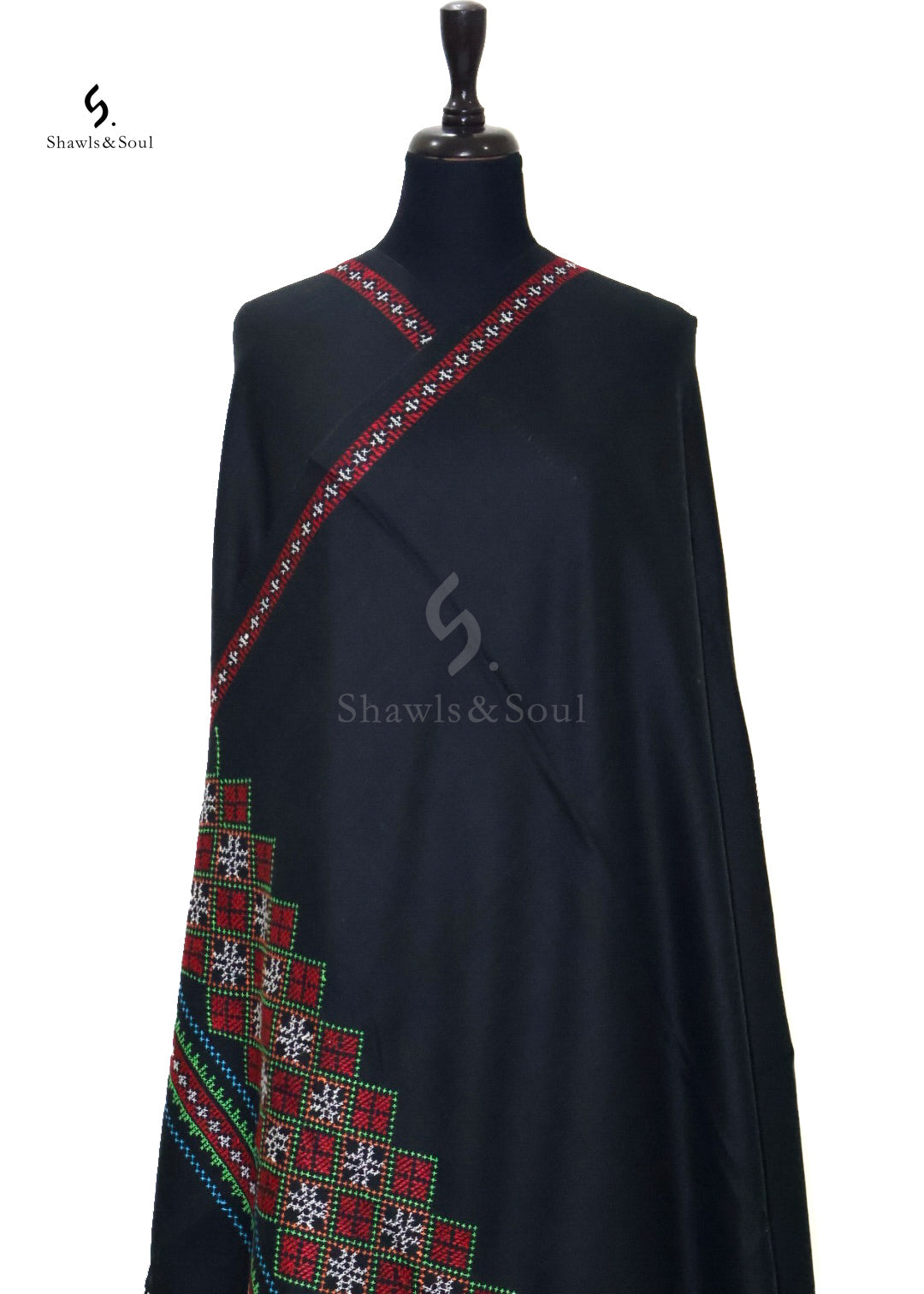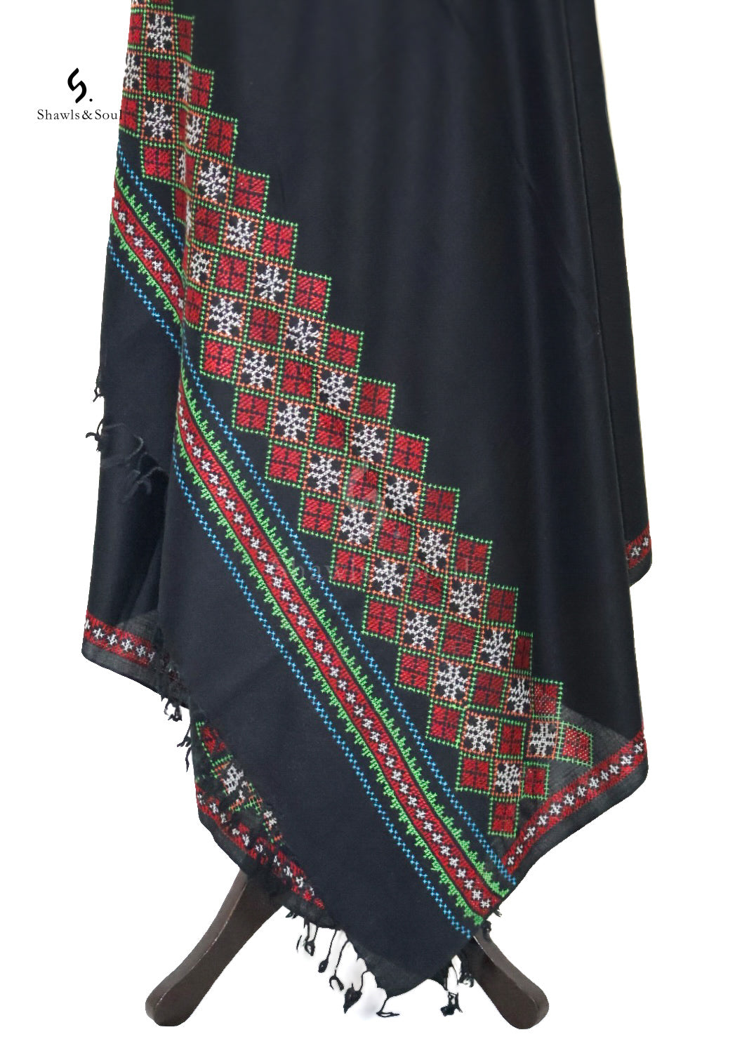 Elevate your winter wardrobe with the Crossed Elegance A shawl, crafted from premium wool for warmth and durability. Featuring intricate cross-stitch embroidery, this woolen shawl combines classic artistry with a refined touch, offering both comfort and timeless style during colder seasons.