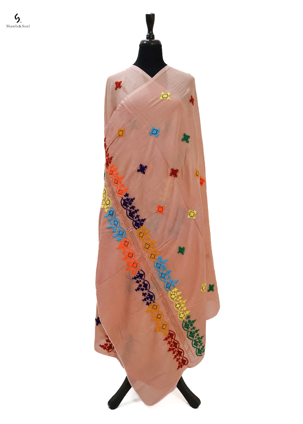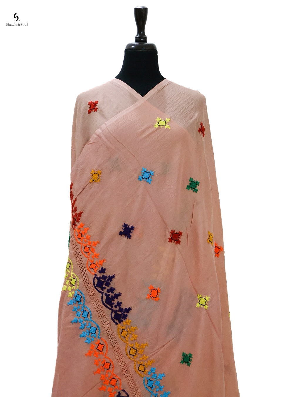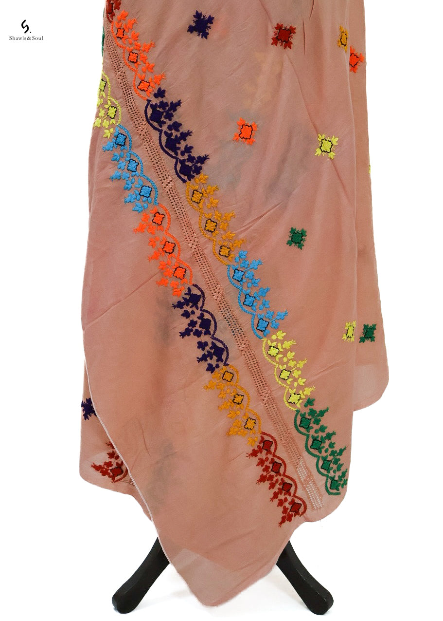 Introducing Ember Bloom, a luxurious summer dupatta handcrafted with delicate Balochi embroidery on soft cotton fabric.