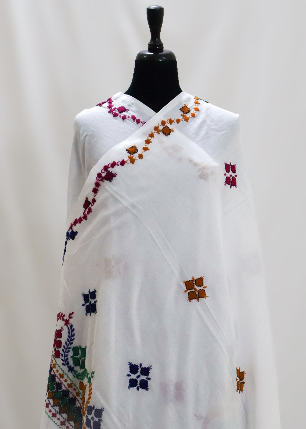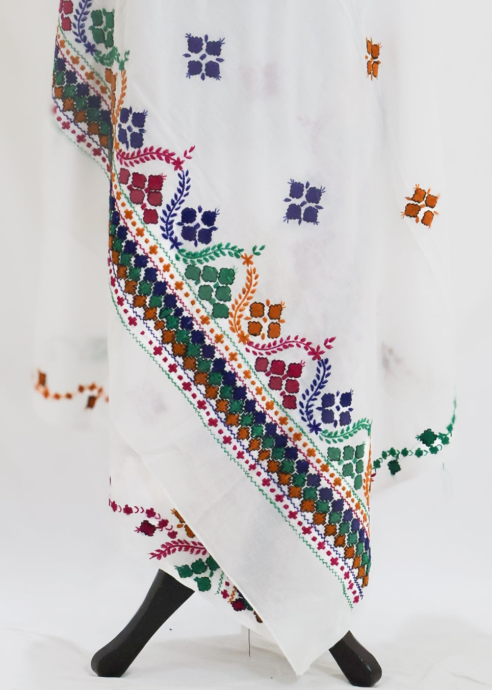 Introducing Ember White, a luxurious summer dupatta handcrafted with delicate Balochi embroidery on soft lawn fabric.