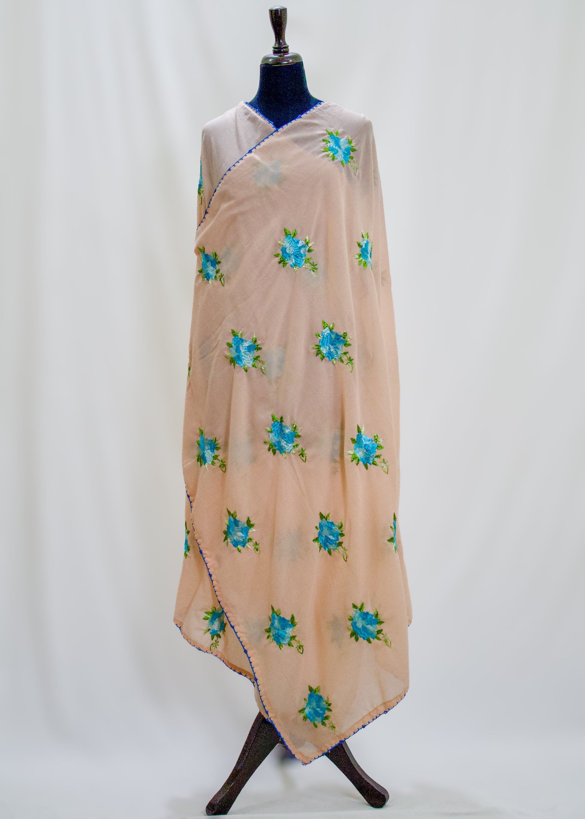 Wrap yourself in luxury with our Gul e Bahar shawl. Adorned with intricate hand embroidery and the traditional Swati Gulkari technique, this peach colored floral shawl is perfect for adding a touch of elegance to your summer wardrobe.
