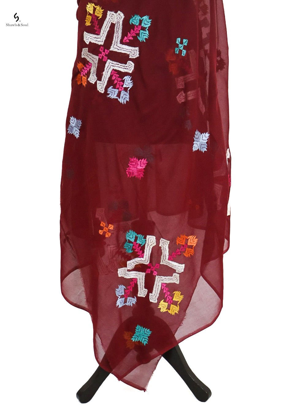 Introducing Gul-e-Swat, the epitome of luxury and sophistication. This shawl features exquisite Swati phulkari hand embroidery, bringing the rich and vibrant culture of the Swat to your wardrobe. Wrap yourself in elegance and style with this one-of-a-kind piece.