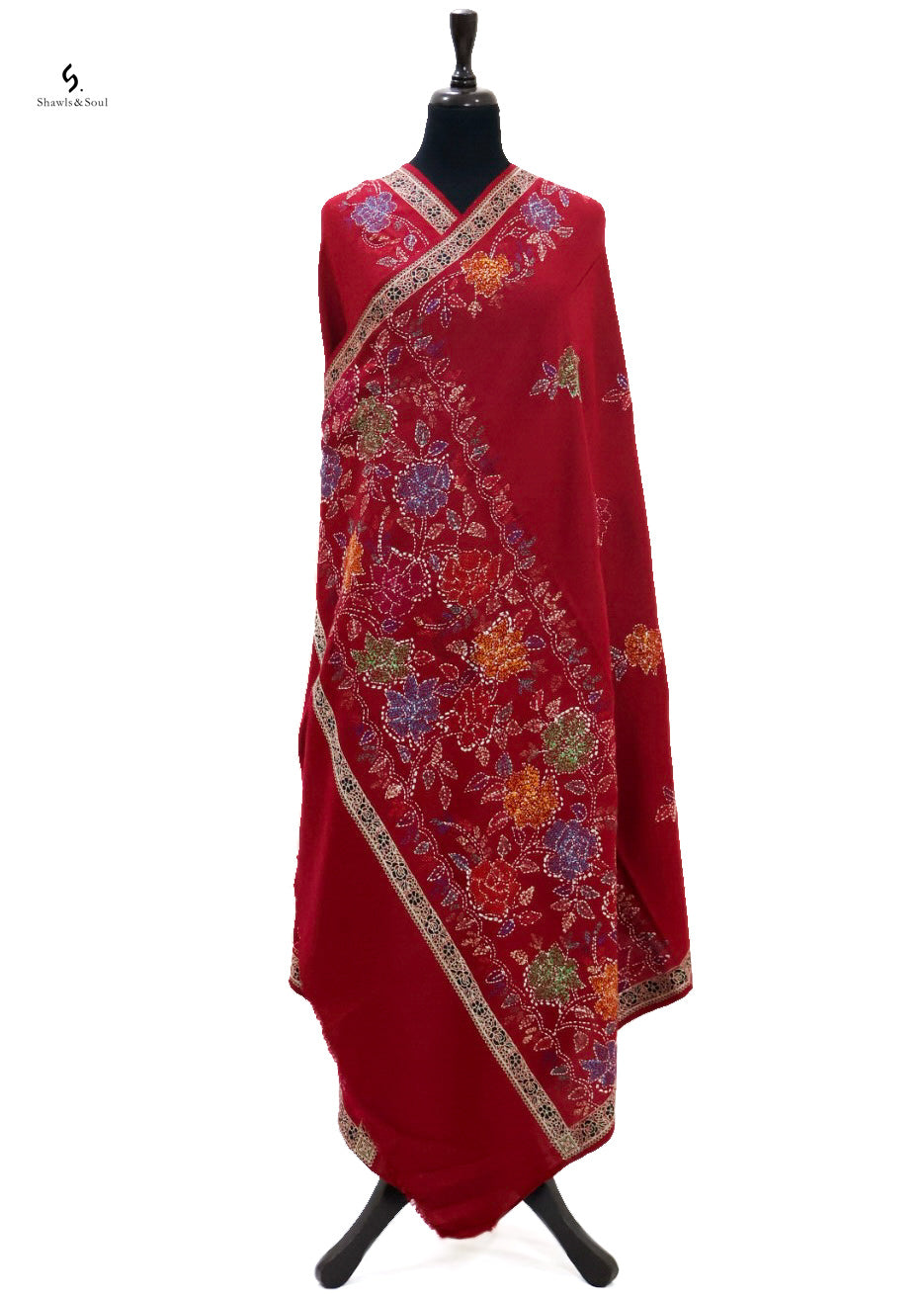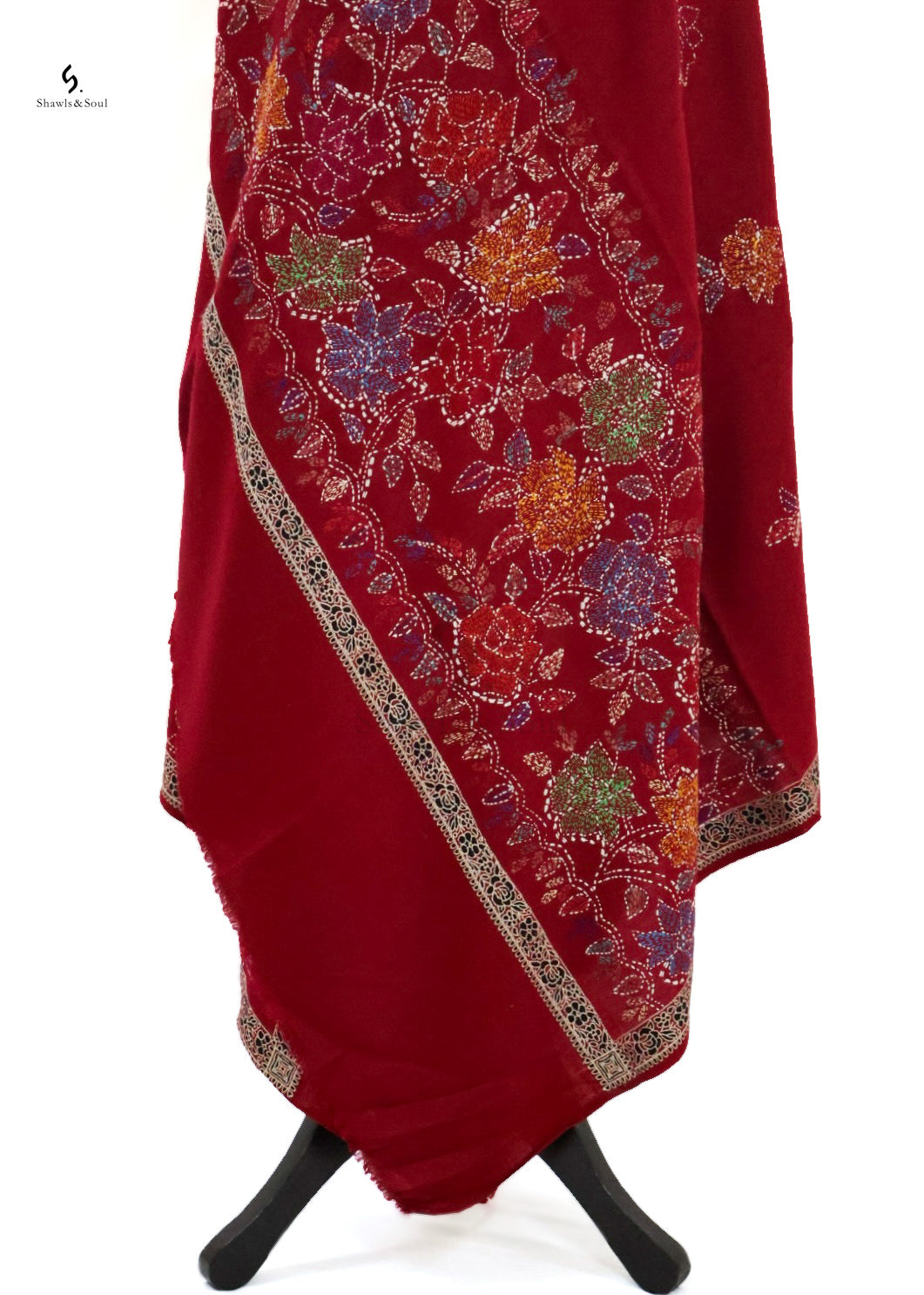 Experience the elegance of Timeless Threads, a Lahore Pashmina exquisitely adorned with Kacha embroidery. Its rich texture and intricate craftsmanship offer warmth and a luxurious statement piece for refined wardrobes. Perfect for those who appreciate timeless sophistication and artisanal detail.