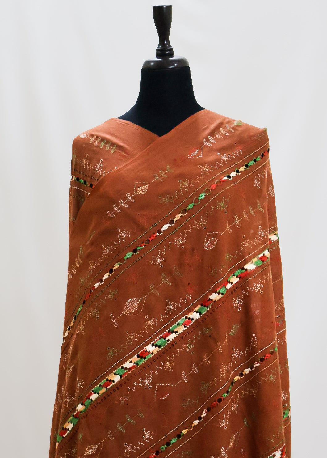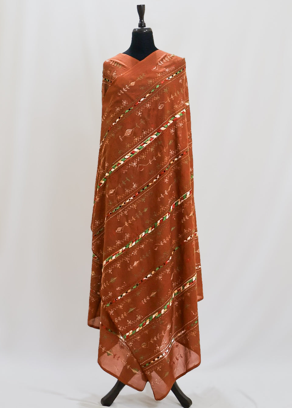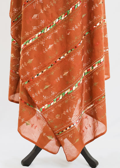 Elegant and airy, this Swiss lawn shawl features vibrant hand embroidery. A refined blend of comfort and tradition, perfect for summer days and festive evenings.