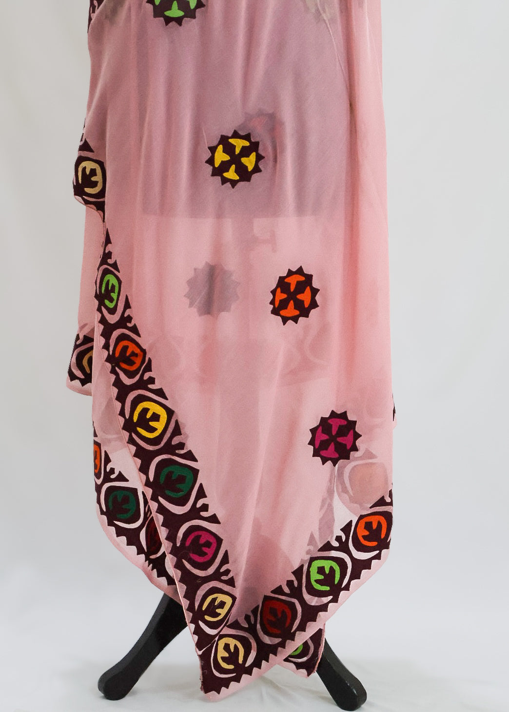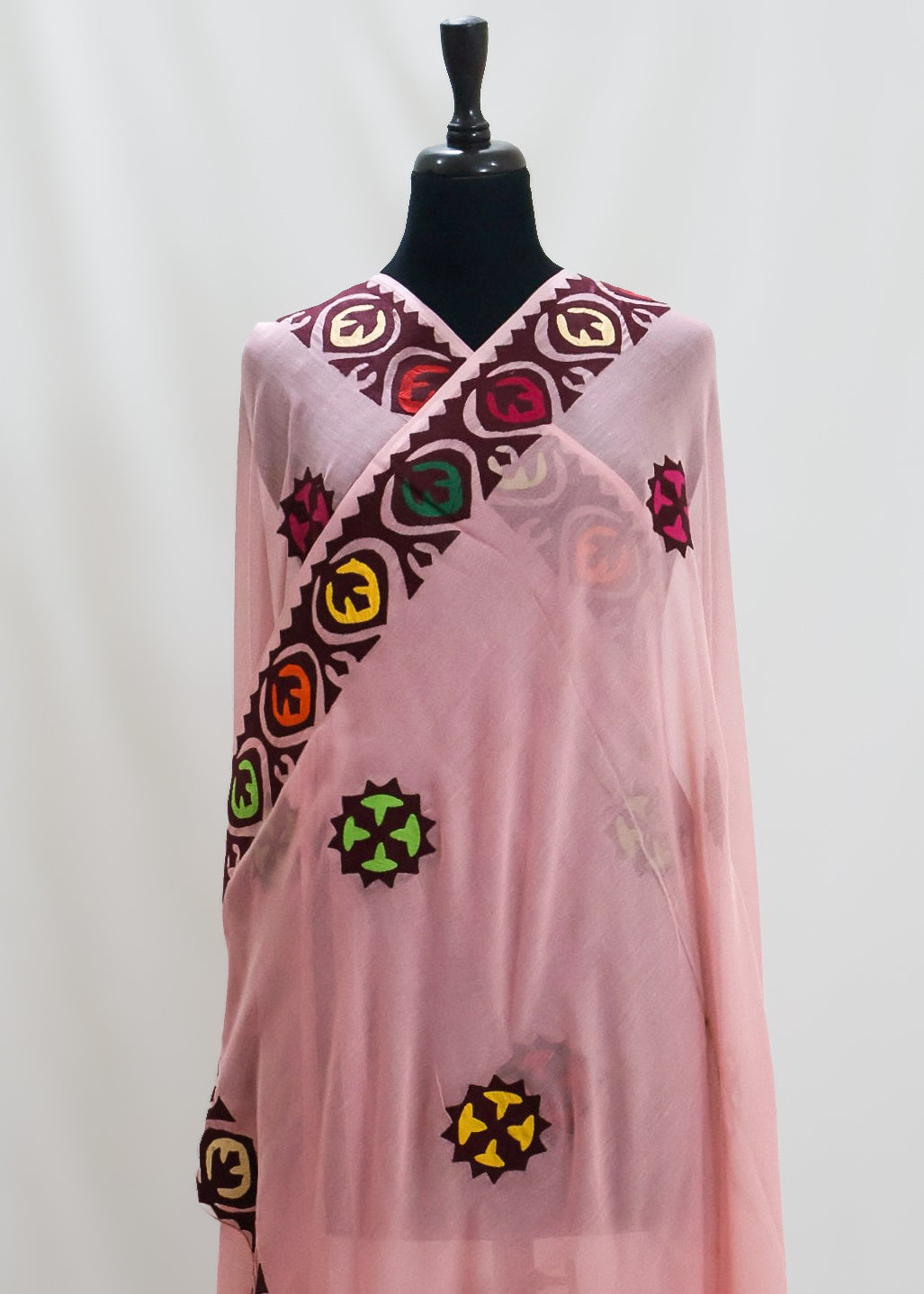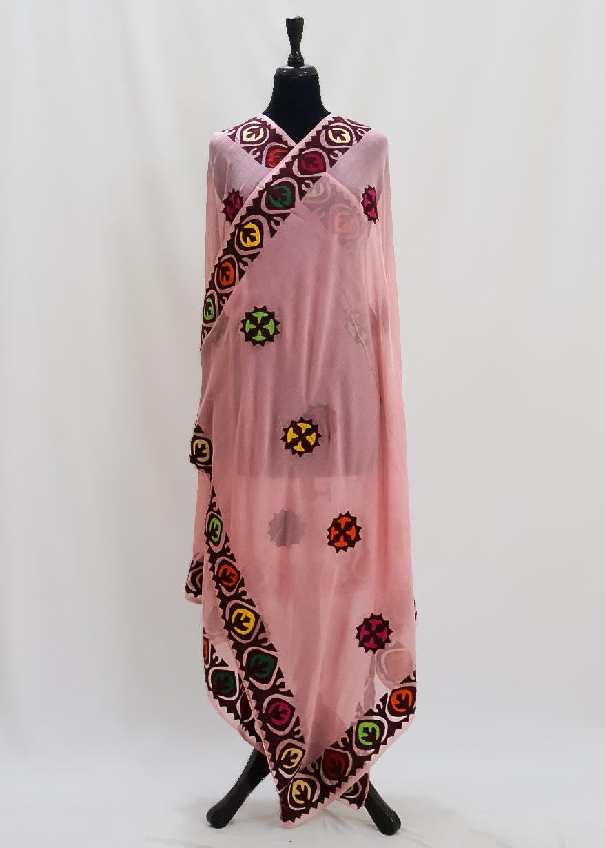 Introducing the Noori summer shawl, featuring delicate applique embroidery on a single line design. Perfect for adding a touch of luxury to your summer wardrobe.