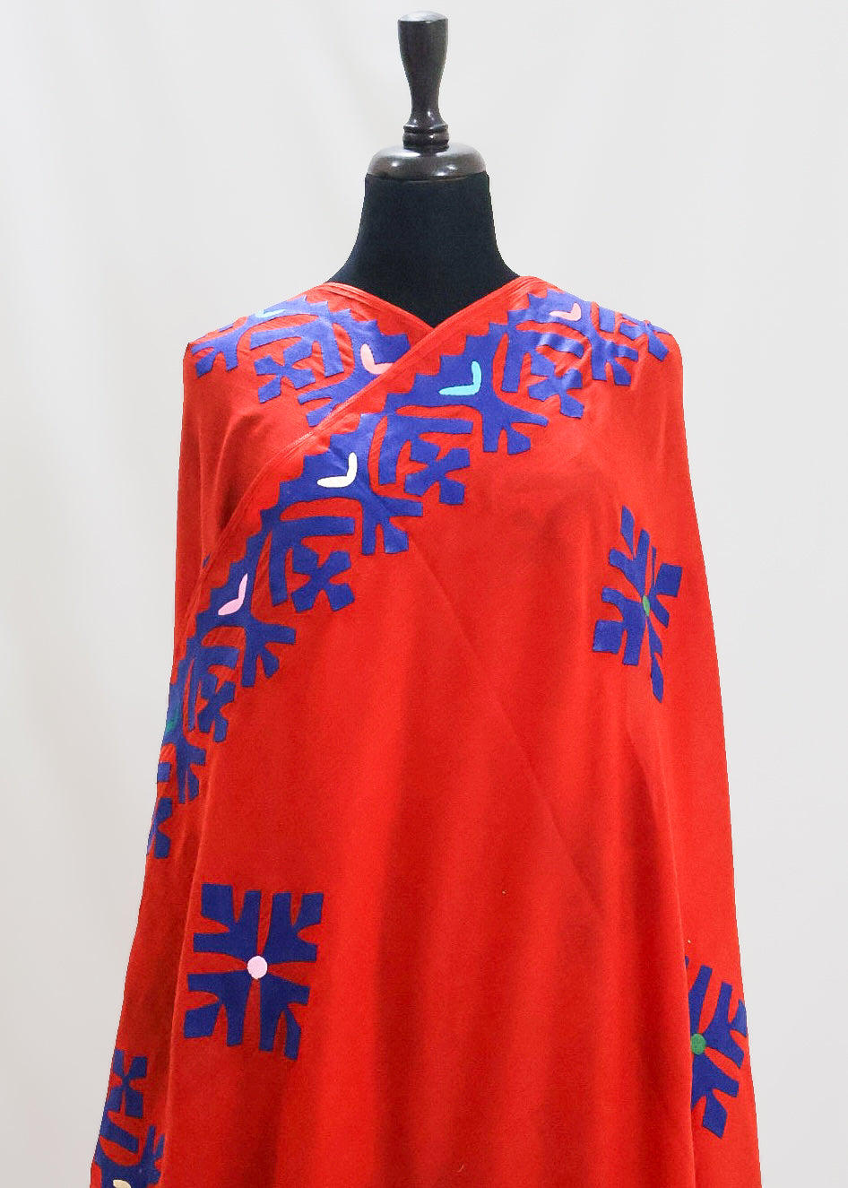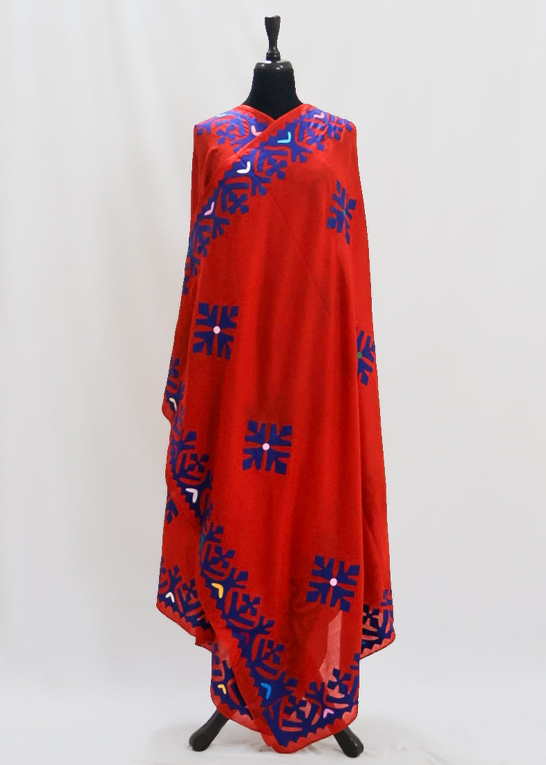 Introducing the Noori summer shawl, featuring delicate applique embroidery on a single line design. Perfect for adding a touch of luxury to your summer wardrobe.