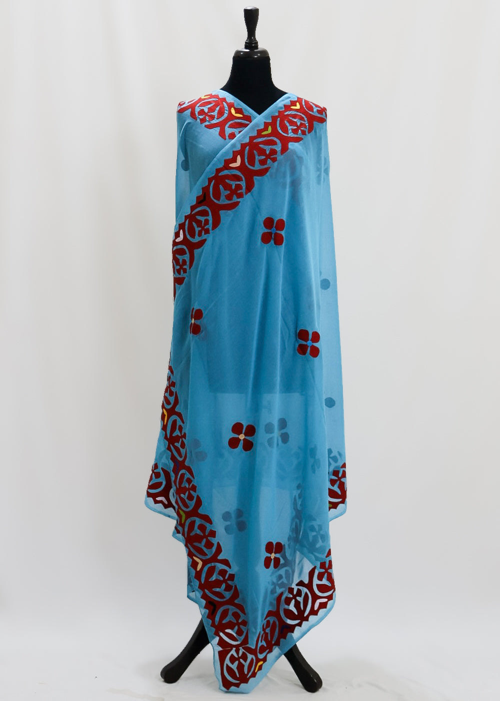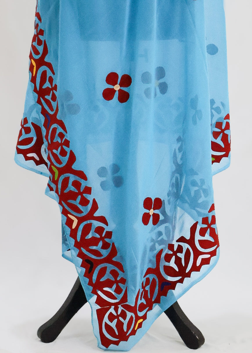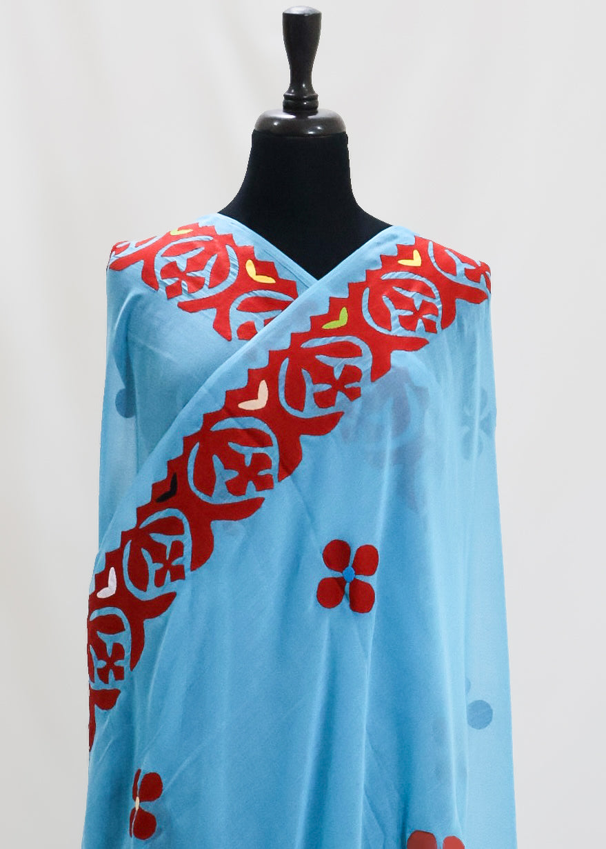 Introducing the Noori summer shawl, featuring delicate applique embroidery on a single line design. Perfect for adding a touch of luxury to your summer wardrobe.