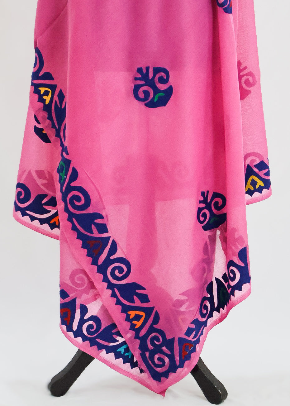 Introducing the Noori summer shawl, featuring delicate applique embroidery on a single line design. Perfect for adding a touch of luxury to your summer wardrobe.