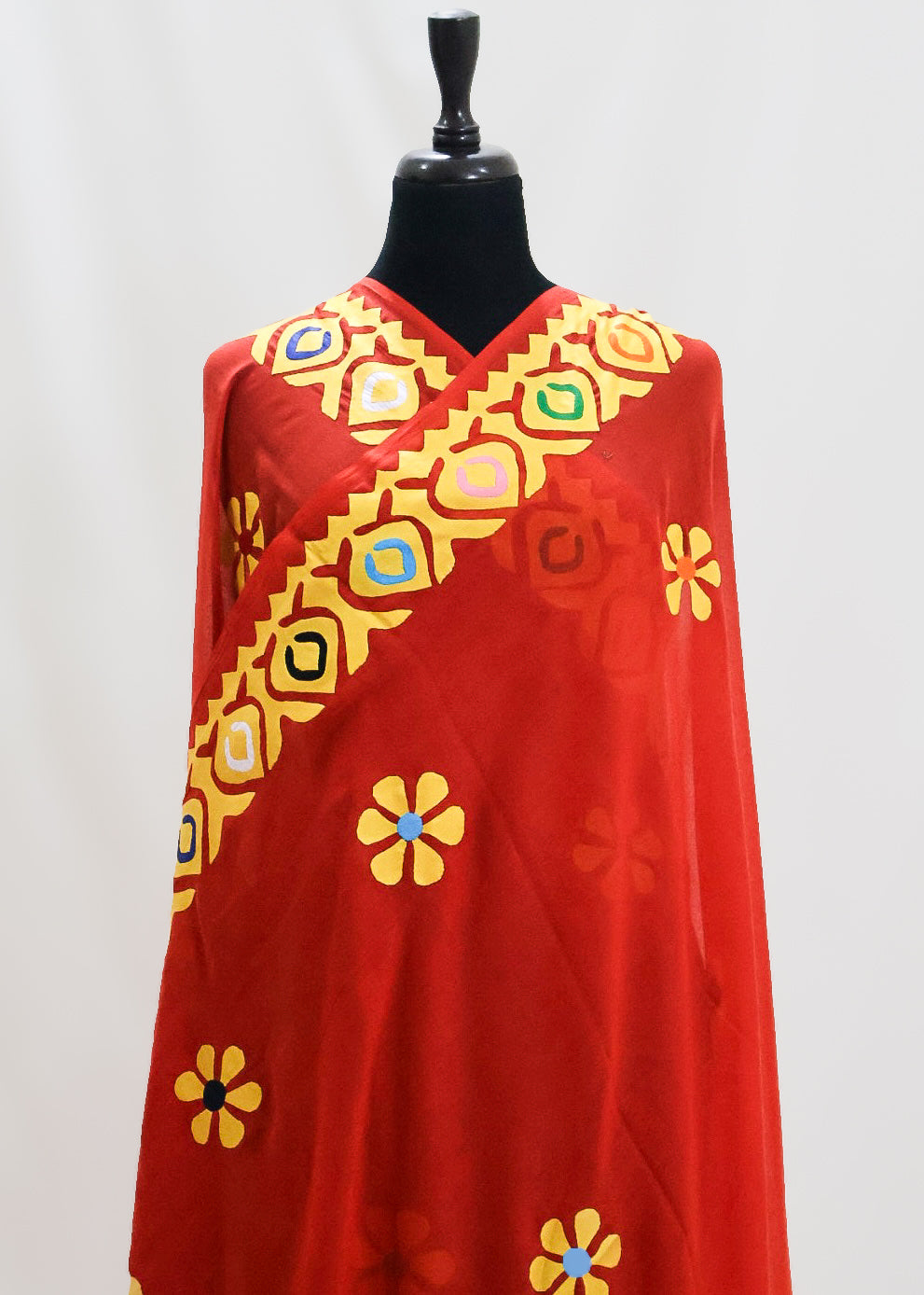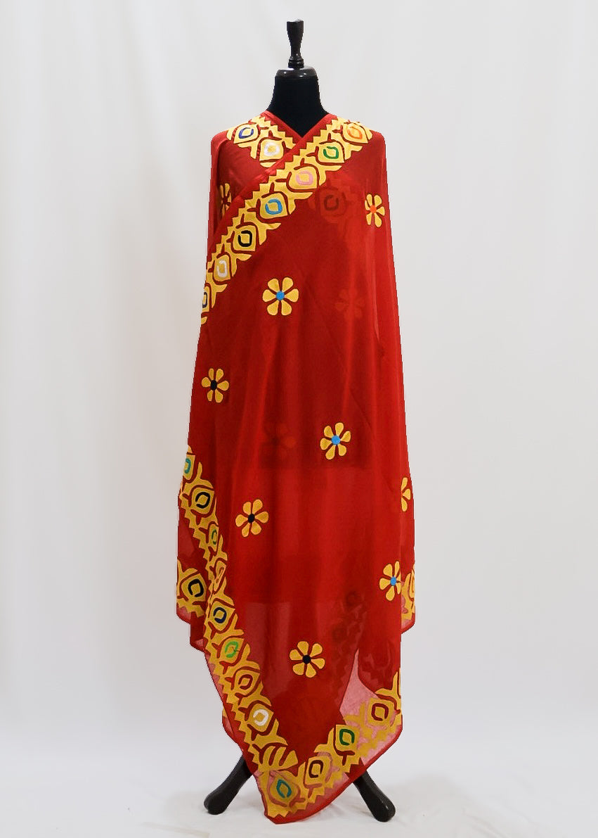 Introducing the Noori summer shawl, featuring delicate applique embroidery on a single line design. Perfect for adding a touch of luxury to your summer wardrobe.