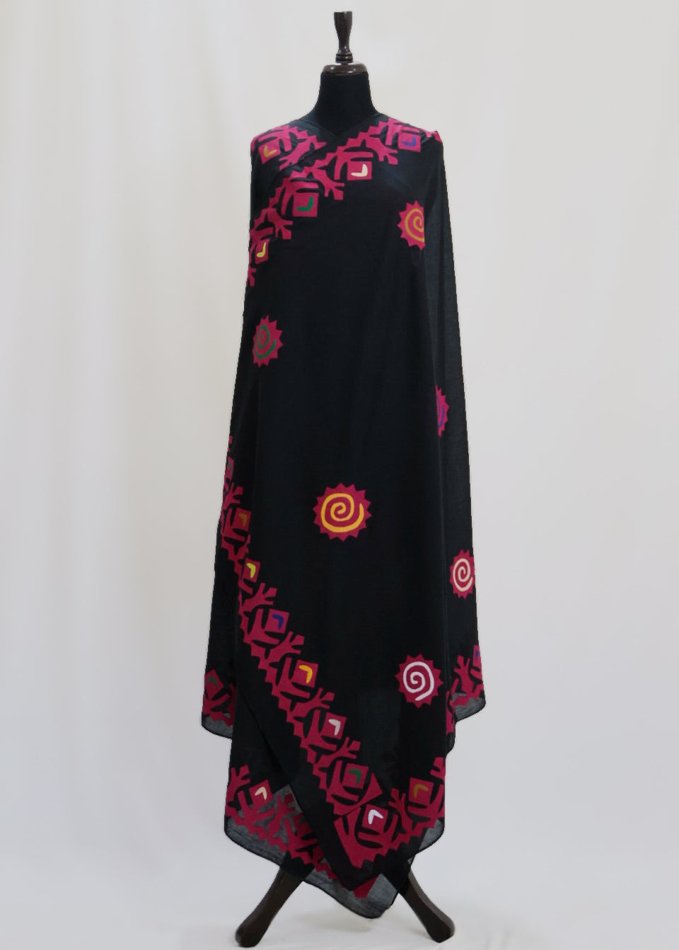 Introducing the Noori summer shawl, featuring delicate applique embroidery on a single line design. Perfect for adding a touch of luxury to your summer wardrobe.
