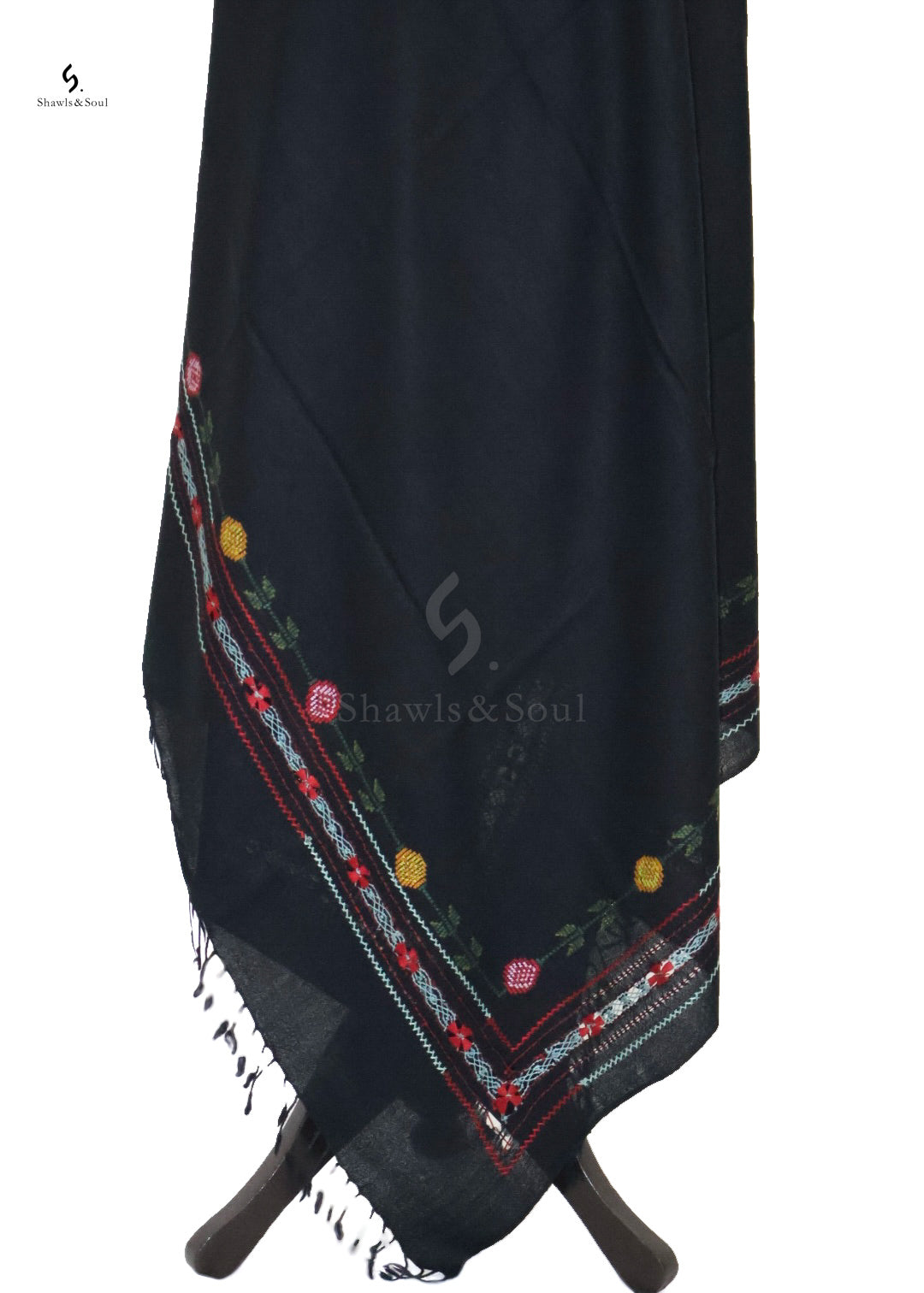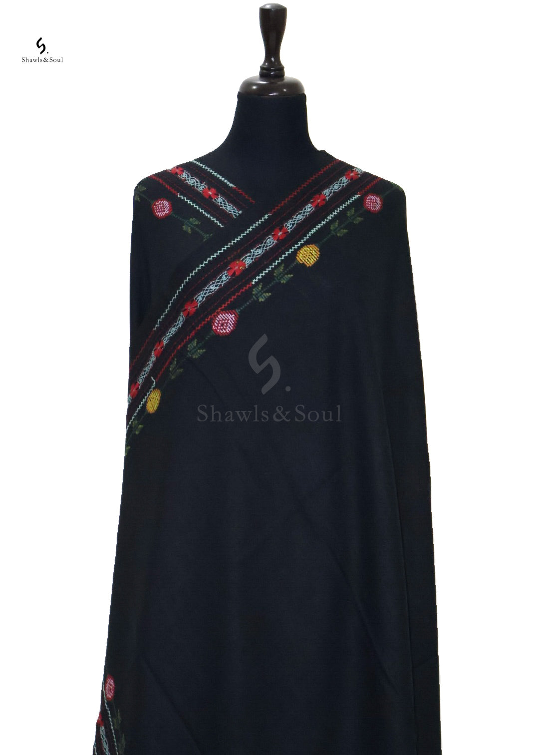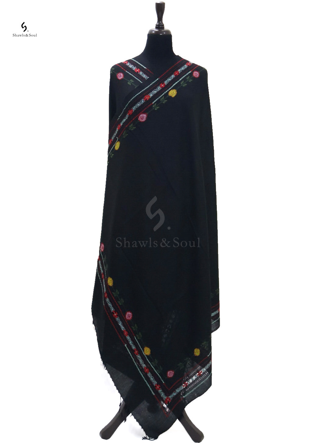 Experience refined elegance with the Pure Essence A shawl, crafted from pure wool for unmatched warmth and softness. This luxurious piece features intricate taarkashi and cross-stitch embroidery in classic black, adding depth and timeless beauty. Perfect for elevating any ensemble, it blends traditional artistry with modern sophistication.
