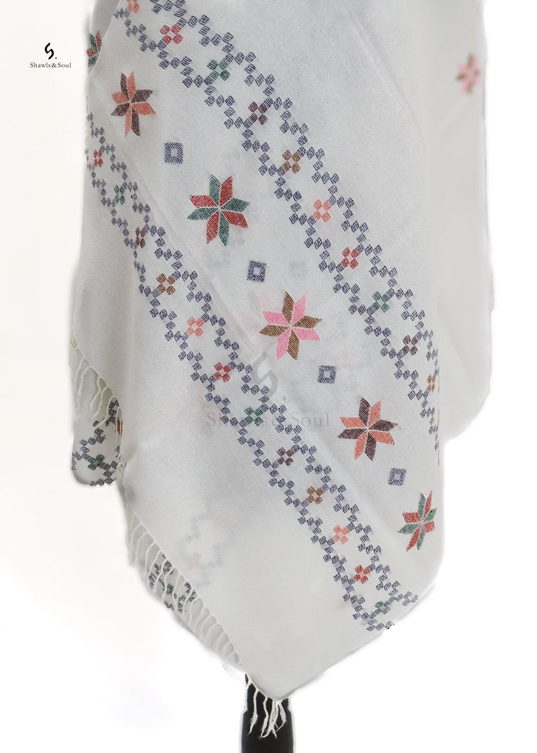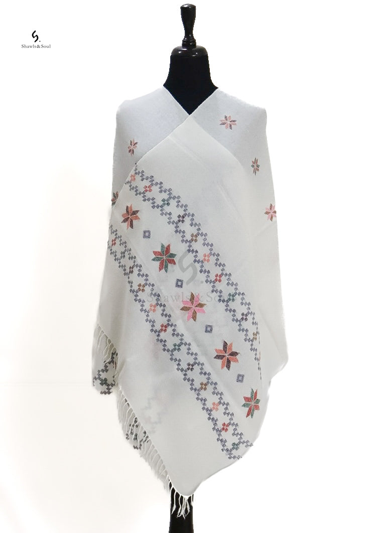 Crafted from pure wool, this elegant winter stole combines timeless sophistication with exceptional comfort. Adorned with intricate loom embroidery, each piece showcases artisanal craftsmanship and refined detail. The sumptuous fabric drapes beautifully while providing luxurious warmth for cooler seasons. Perfect for elevating any ensemble with understated elegance and tactile softness.