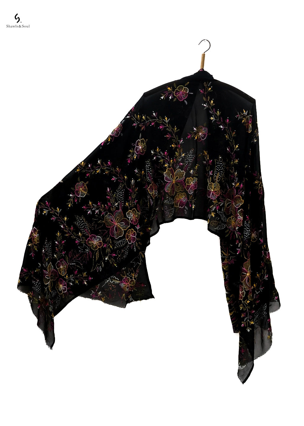 Elegant Chiffon dupatta adorned with delicate multi color hand embroidery. A timeless piece that exudes subtle luxury and refined grace.