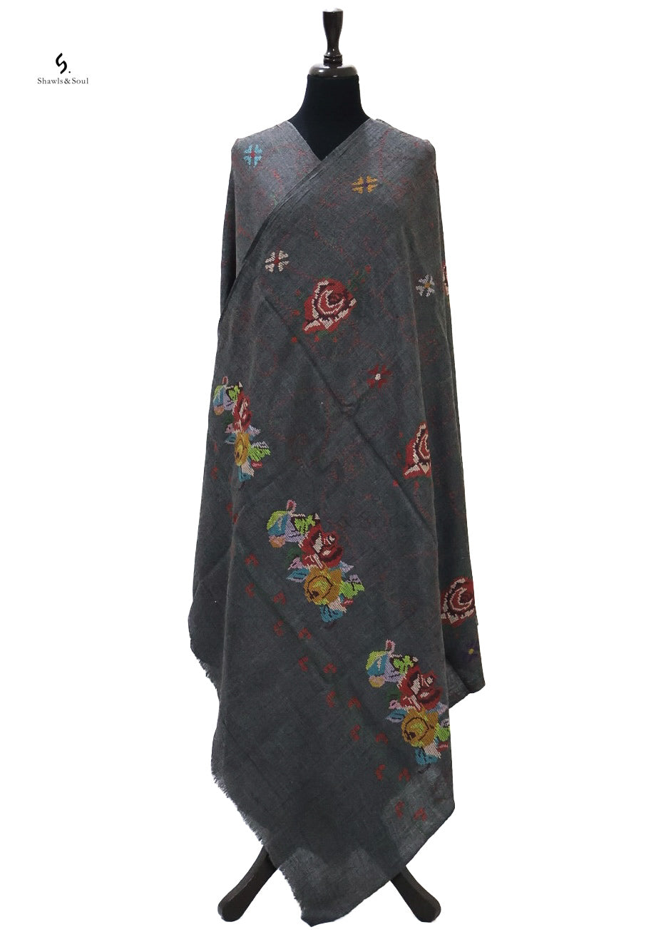 The Rangrez winter shawl is a masterpiece of craftsmanship, featuring full hand-embroidered crossstitch patterns that bring delicate beauty and texture to every inch. This luxurious shawl blends traditional artistry with functional warmth, making it an elegant choice to elevate your winter ensemble.
