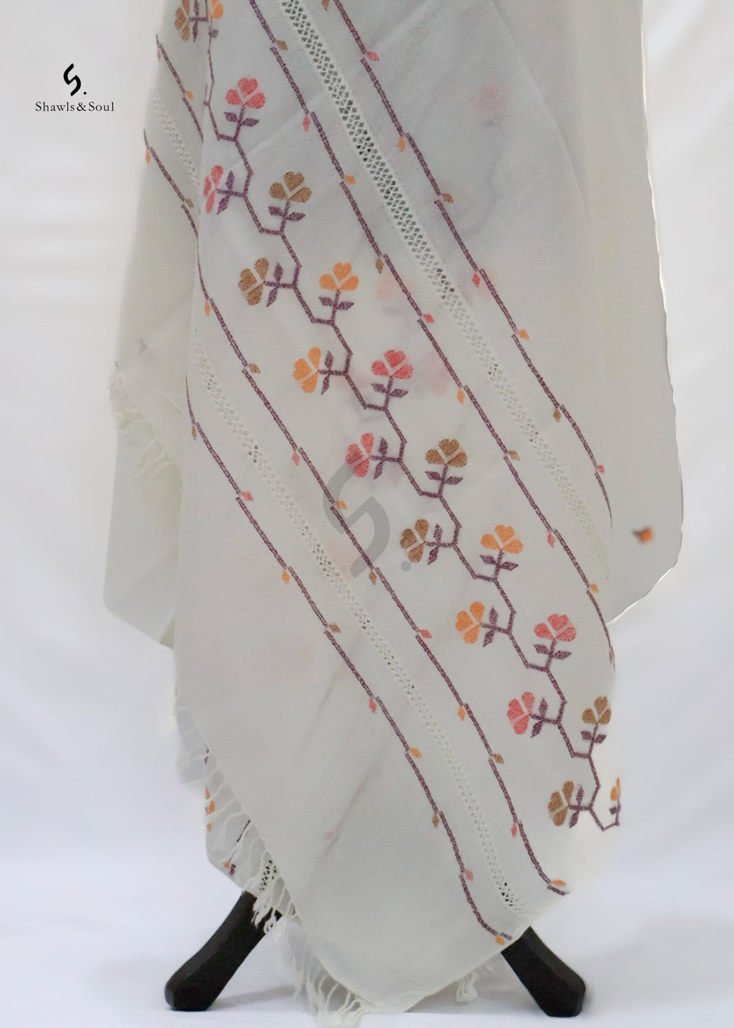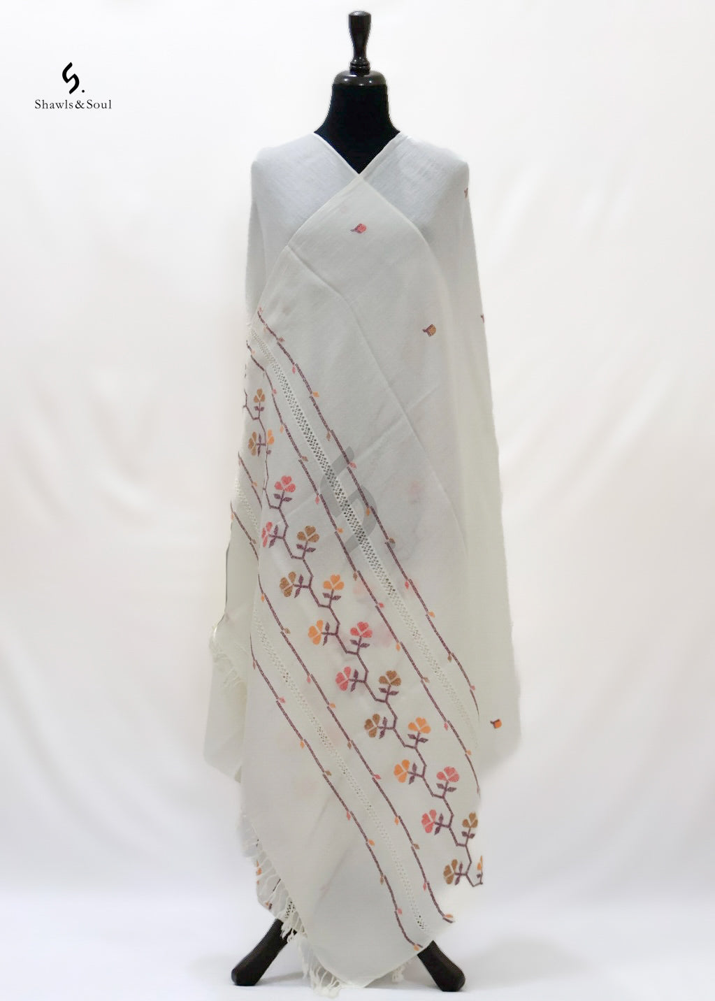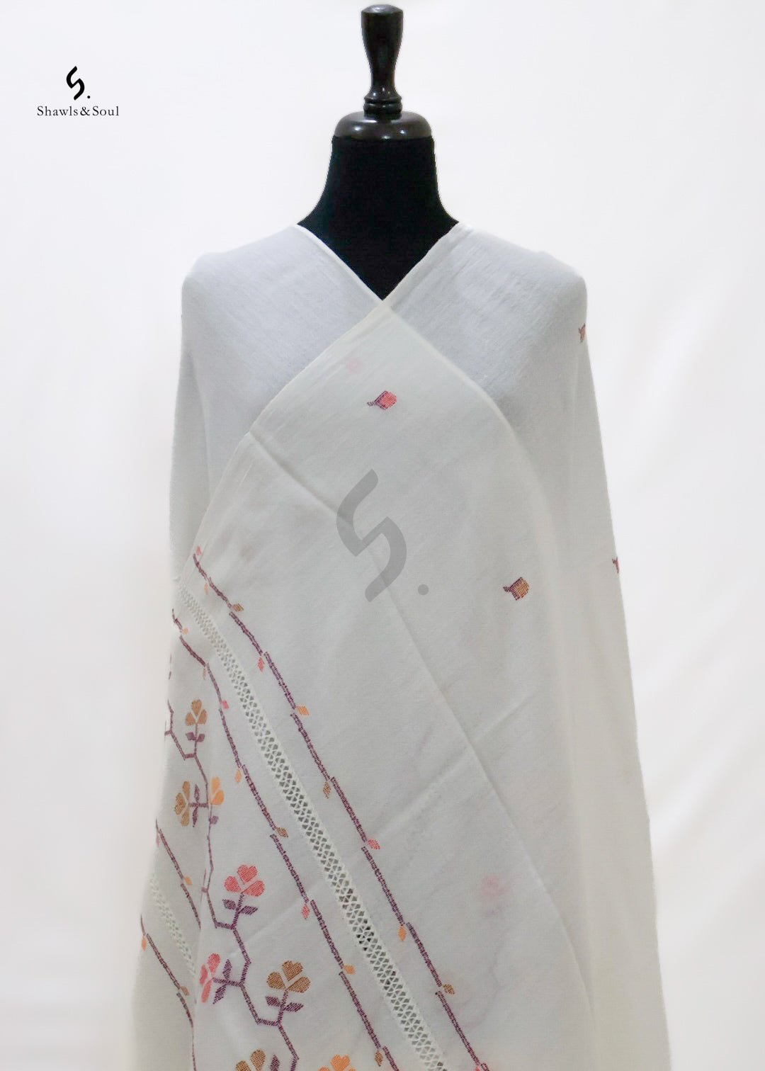 Elevate your winter wardrobe with the Sahar Gul shawl, crafted from 48 wool for exceptional warmth and softness. Featuring intricate Kaddi embroidery, this shawl combines refined artistry with cozy comfort, making it an elegant accessory for chilly days.