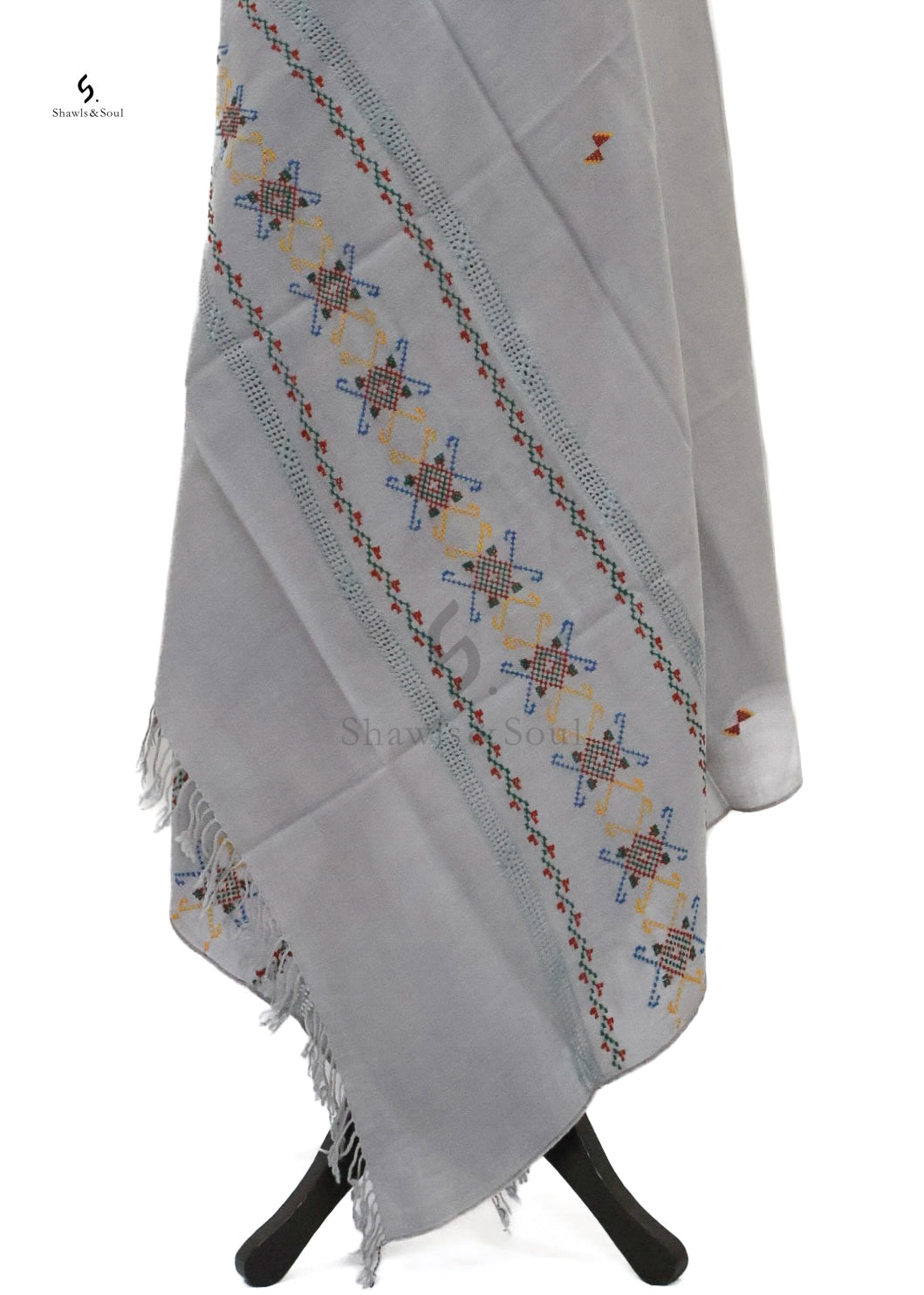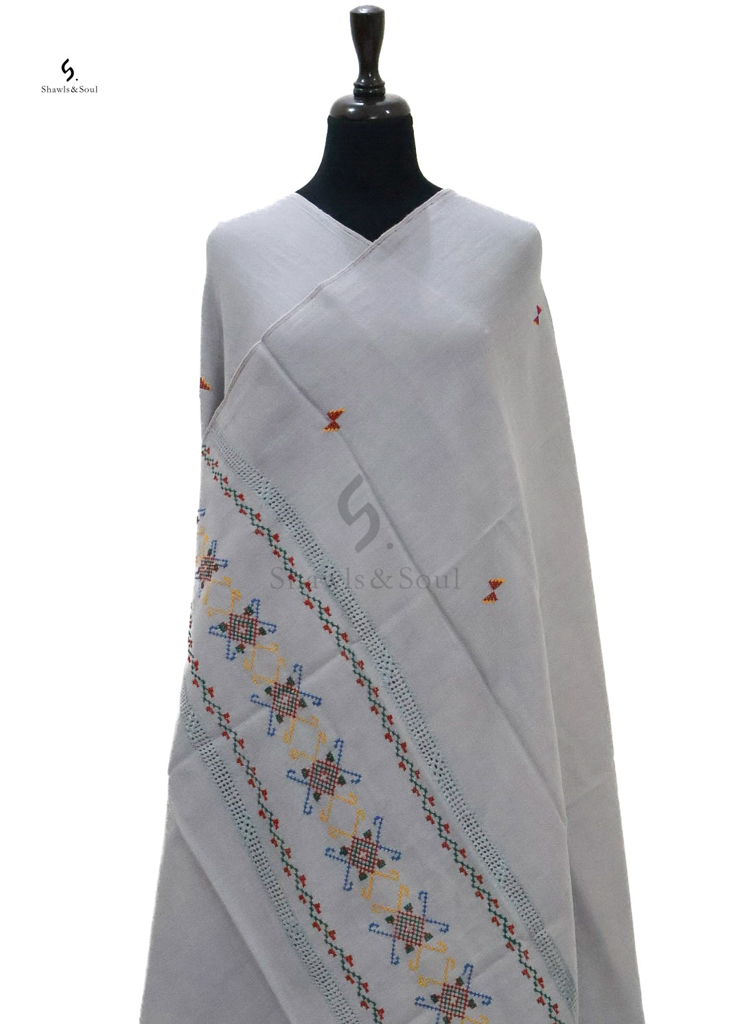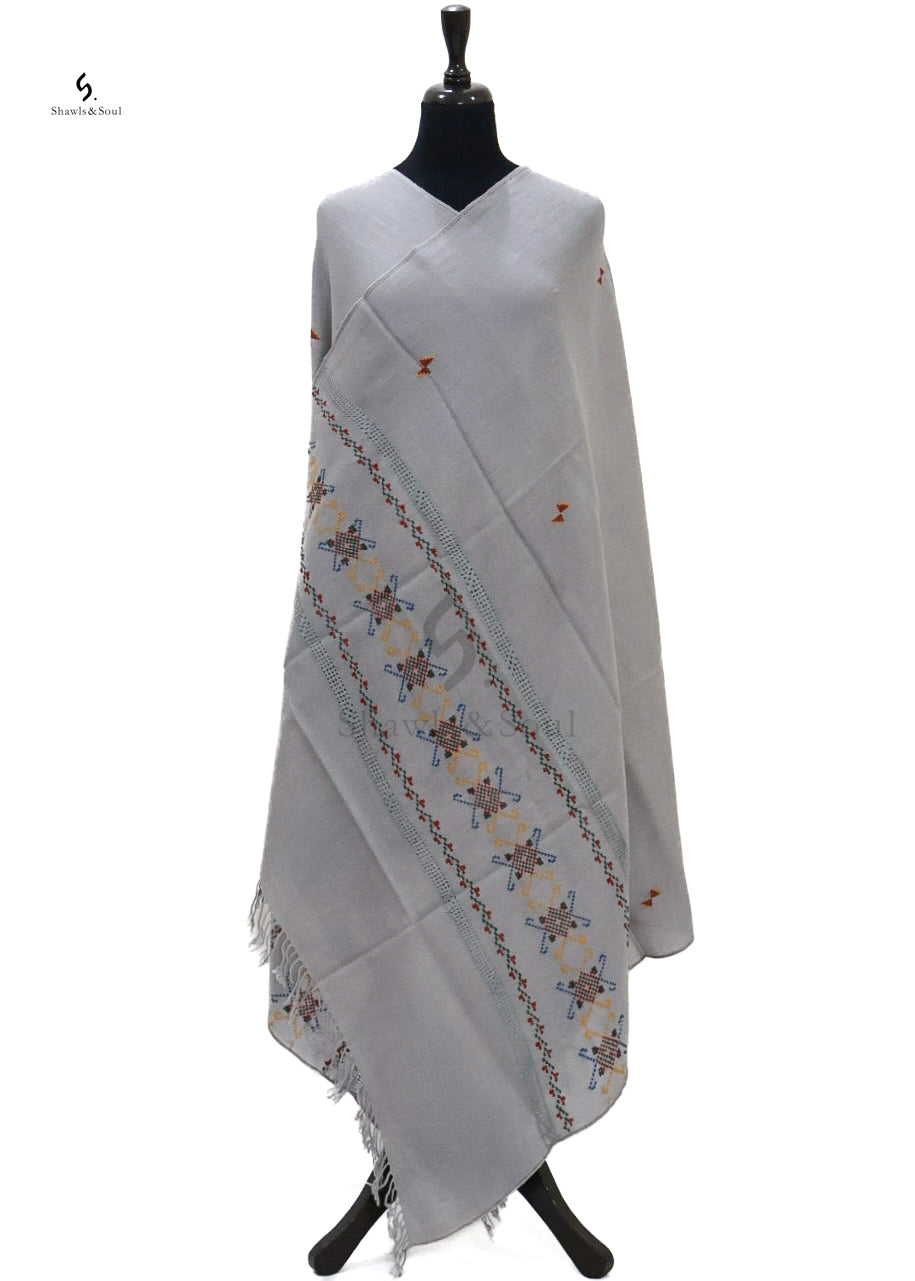 Experience timeless elegance with the Shafaq winter shawl, featuring exquisite cross stitch and Taarkashi embroidery. Crafted from premium wool, this shawl offers exceptional warmth while showcasing intricate artistry. Its refined design complements sophisticated wardrobes, making it a luxurious choice for cold seasons.