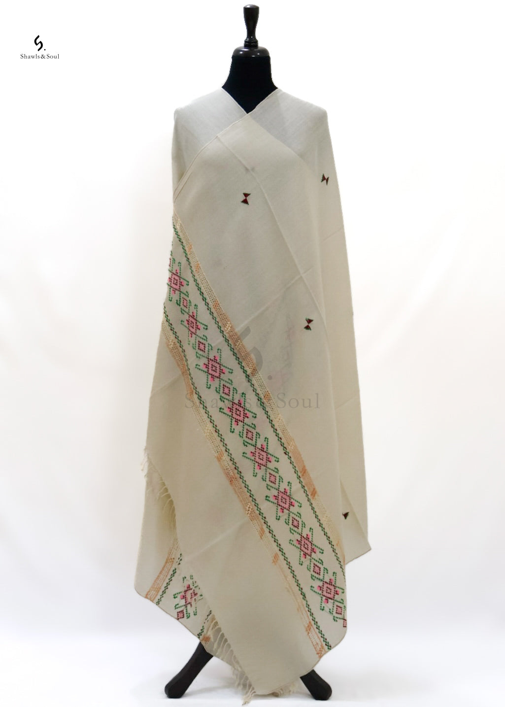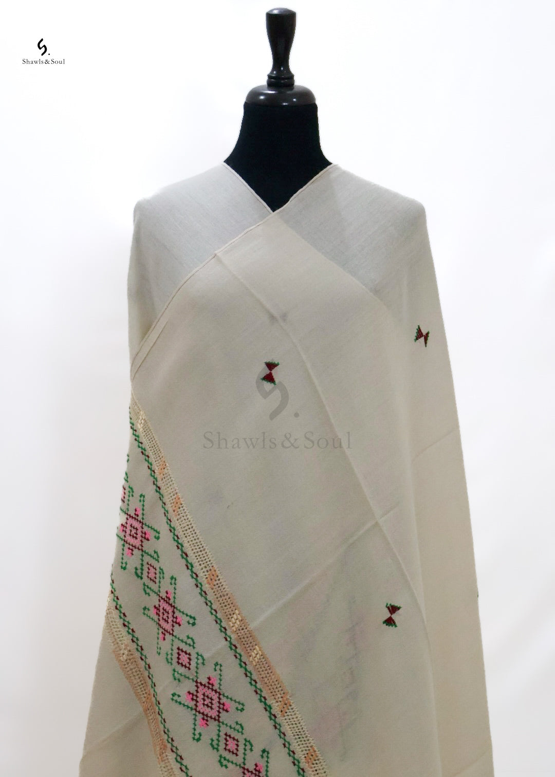 Experience timeless elegance with the Shafaq winter shawl, featuring exquisite cross stitch and Taarkashi embroidery. Crafted from premium wool, this shawl offers exceptional warmth while showcasing intricate artistry. Its refined design complements sophisticated wardrobes, making it a luxurious choice for cold seasons.