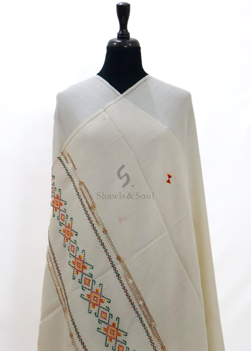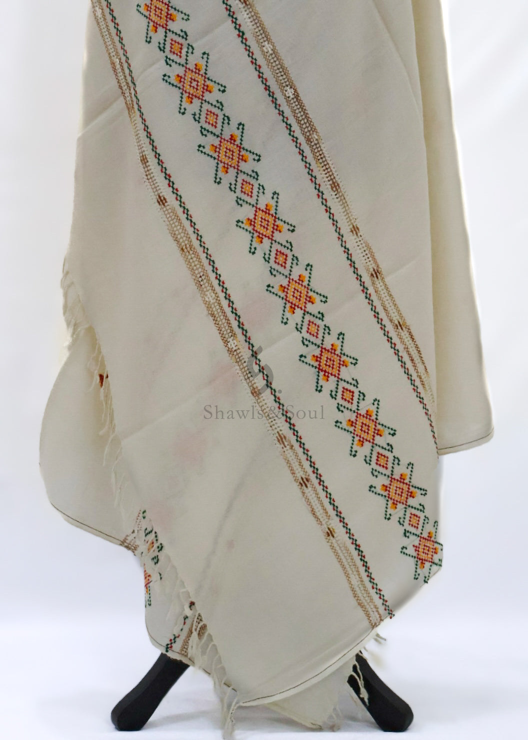 Experience timeless elegance with the Shafaq winter shawl, featuring exquisite cross stitch and Taarkashi embroidery. Crafted from premium wool, this shawl offers exceptional warmth while showcasing intricate artistry. Its refined design complements sophisticated wardrobes, making it a luxurious choice for cold seasons.