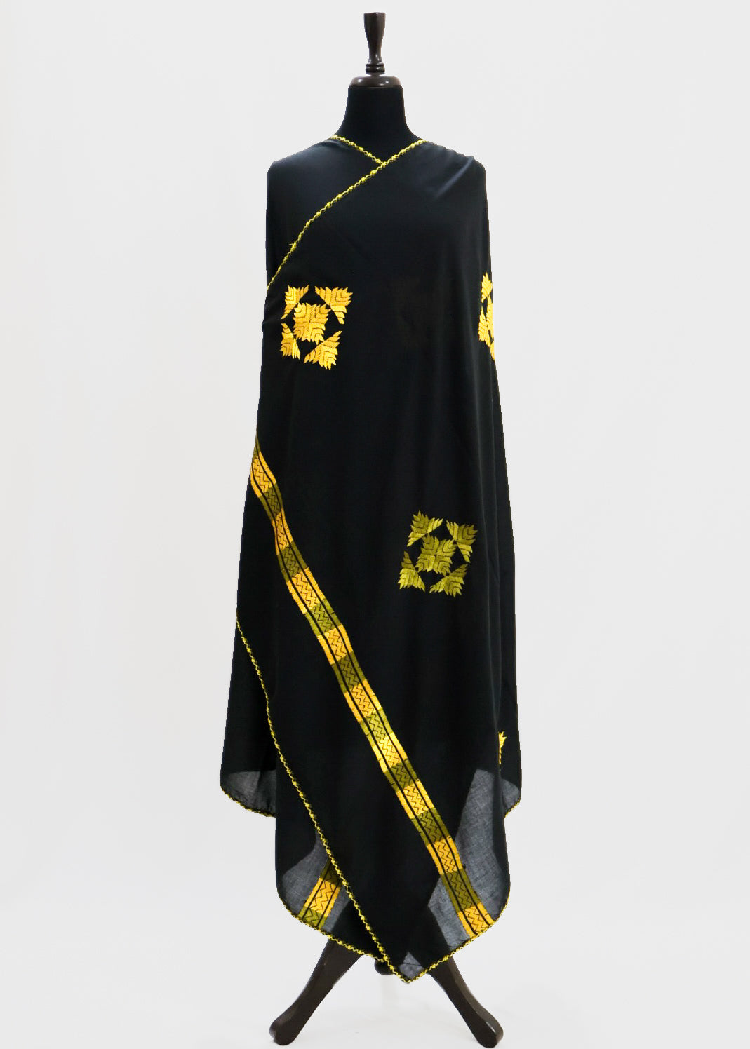 Elevate your summer ensemble with our exquisite Swati Phulkaar A shawl. A hand embroidered shawl show casing beautiful Swati Phulkari.