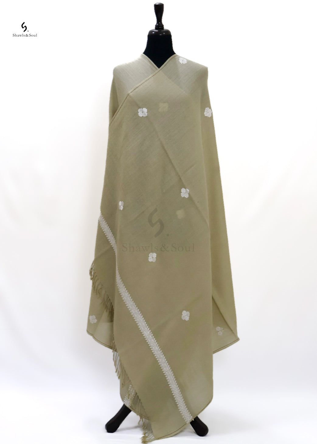 Swati Simple is a finely crafted woolen winter shawl featuring traditional Swati Phulkari embroidery. This elegant piece combines warmth with artisanal detail, ideal for those seeking a sophisticated accessory that honors heritage while enhancing seasonal style.