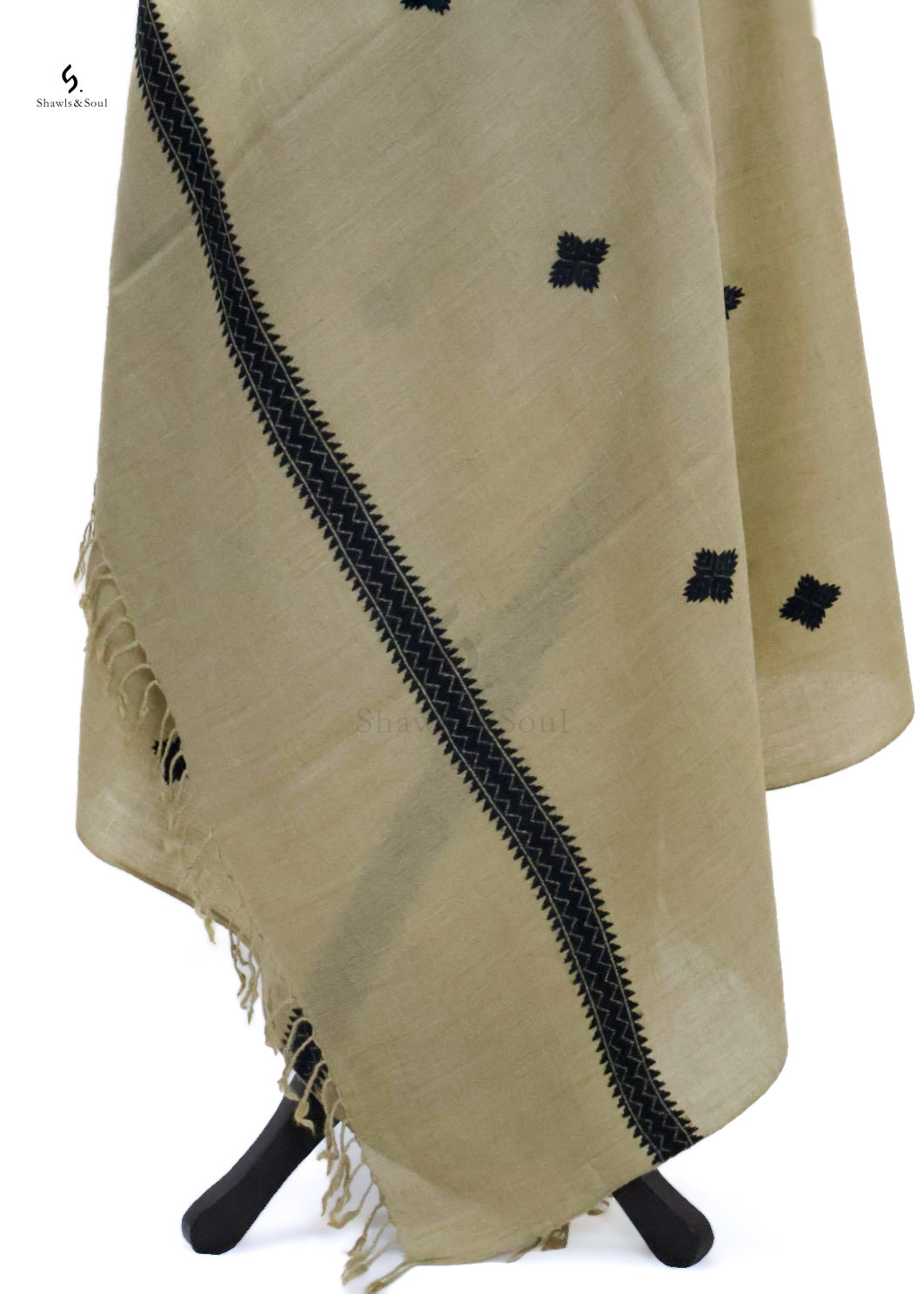 Swati Simple is a finely crafted woolen winter shawl featuring traditional Swati Phulkari embroidery. This elegant piece combines warmth with artisanal detail, ideal for those seeking a sophisticated accessory that honors heritage while enhancing seasonal style.