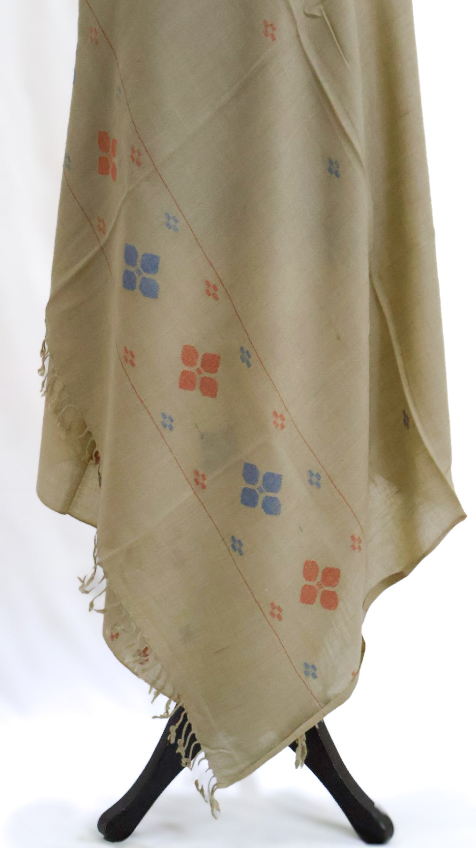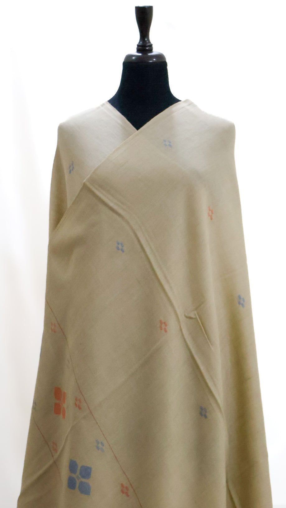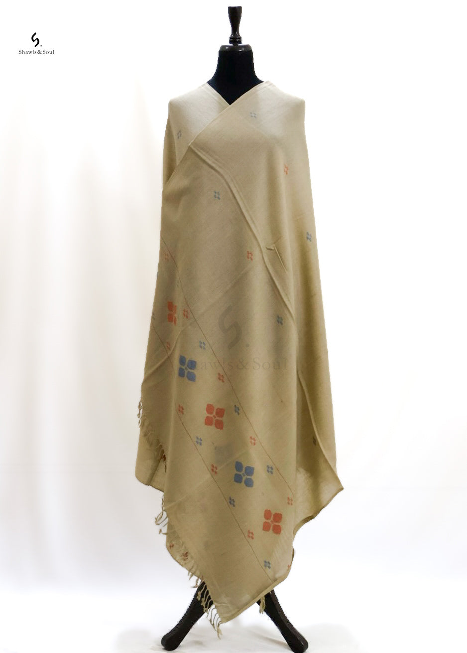 Swati Sundus is a woolen winter shawl, enhanced with delicate Kaddi Embroidery for a graceful and warm accessory.