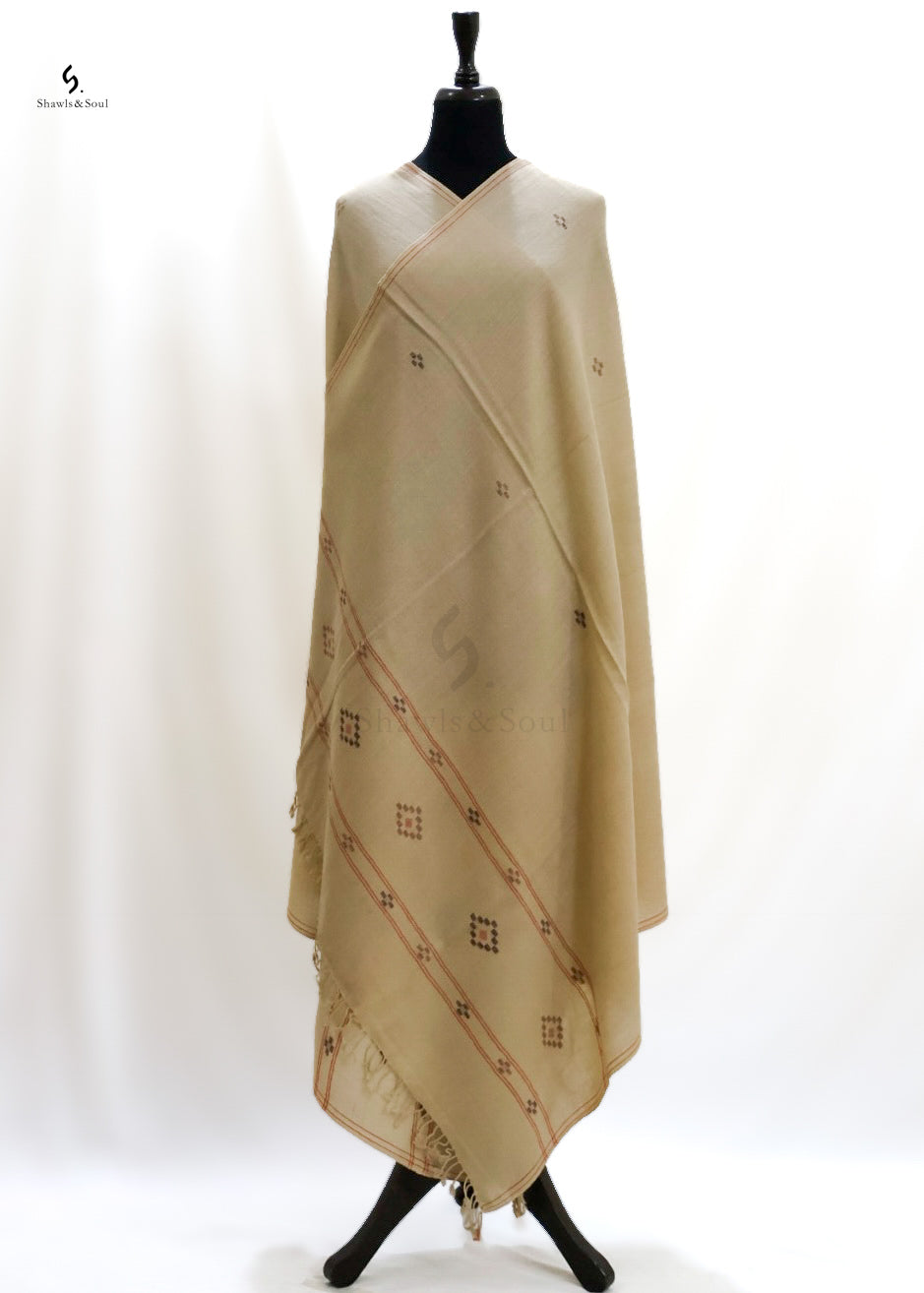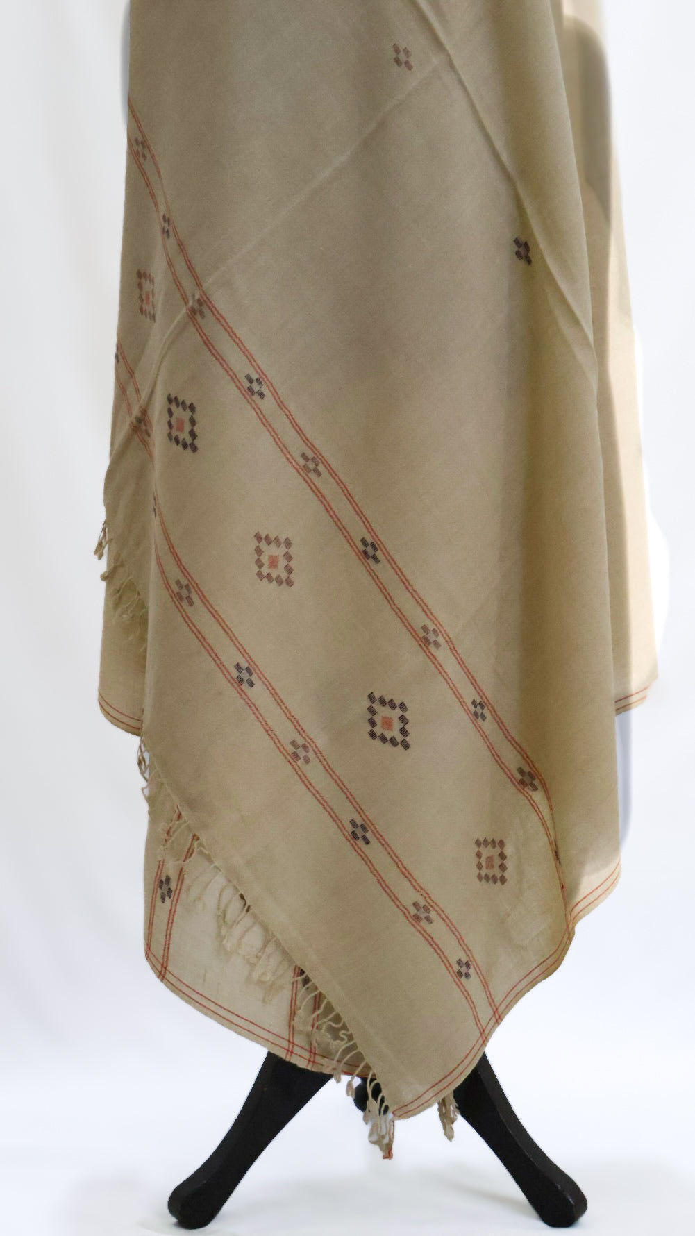 Swati Sundus is a woolen winter shawl, enhanced with delicate Kaddi Embroidery for a graceful and warm accessory.