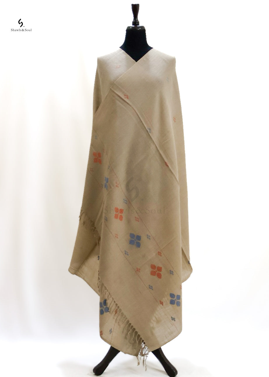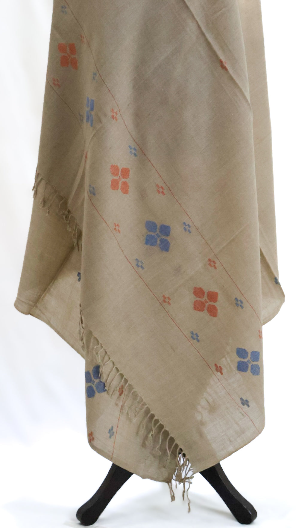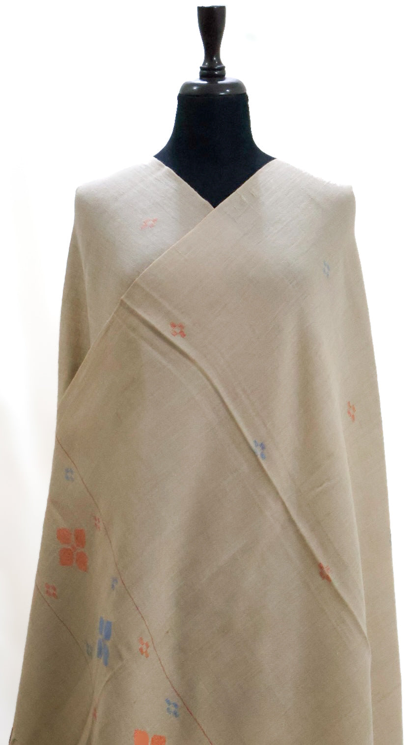 Swati Sundus is a woolen winter shawl, enhanced with delicate Kaddi Embroidery for a graceful and warm accessory.