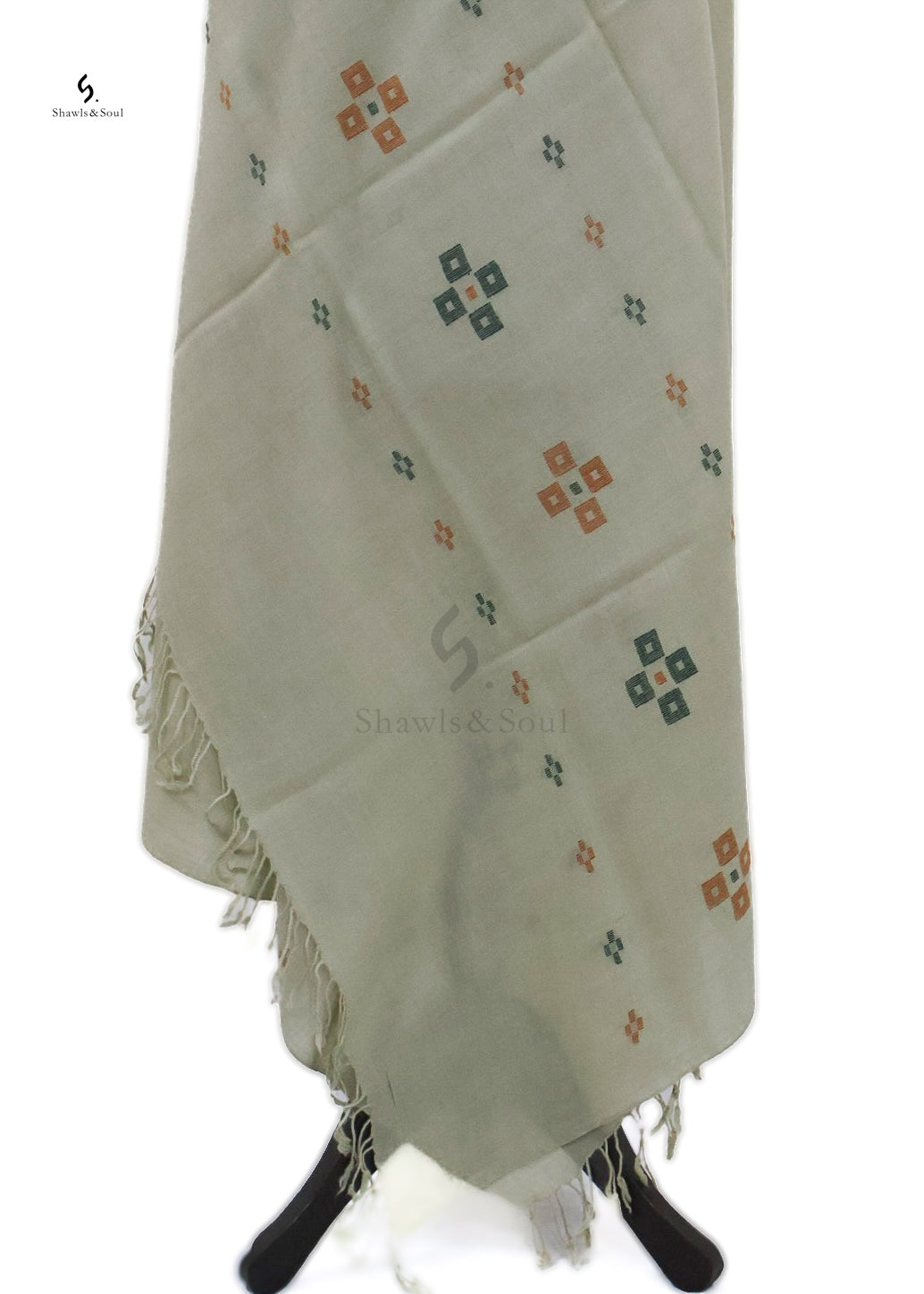Swati Sundus is a woolen winter shawl, enhanced with delicate Kaddi Embroidery for a graceful and warm accessory.