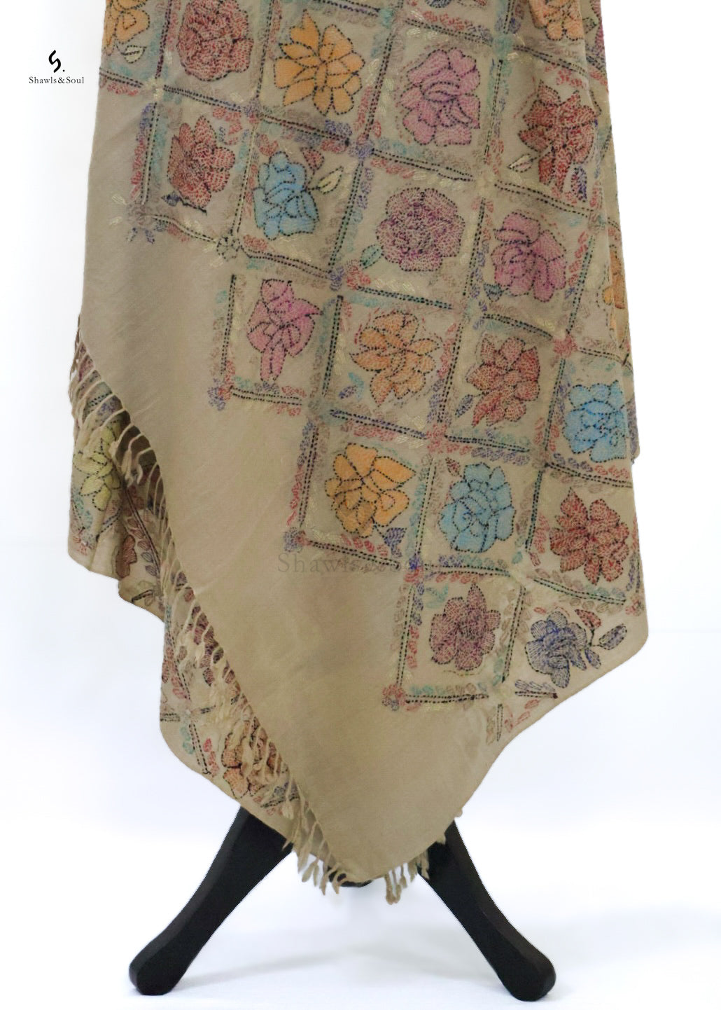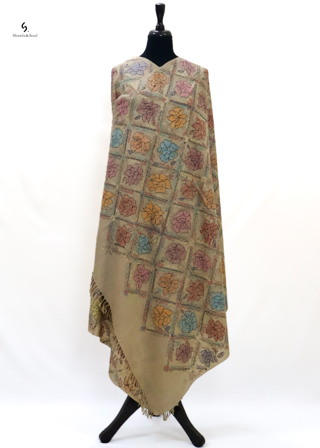 Experience the elegance of Timeless Threads, a woolen shawl exquisitely adorned with heavy Kacha embroidery. Its rich texture and intricate craftsmanship offer warmth and a luxurious statement piece for refined wardrobes. Perfect for those who appreciate timeless sophistication and artisanal detail.