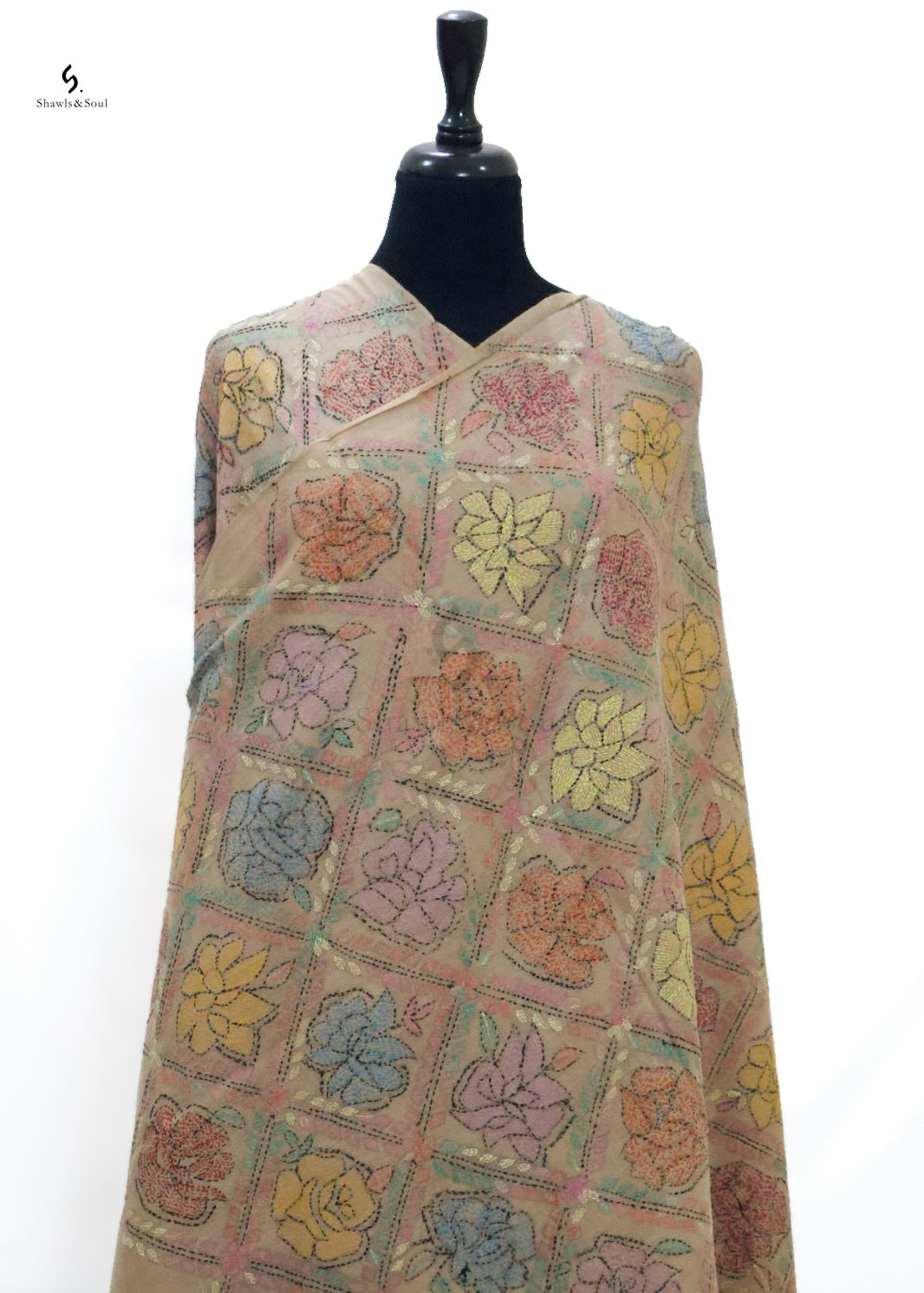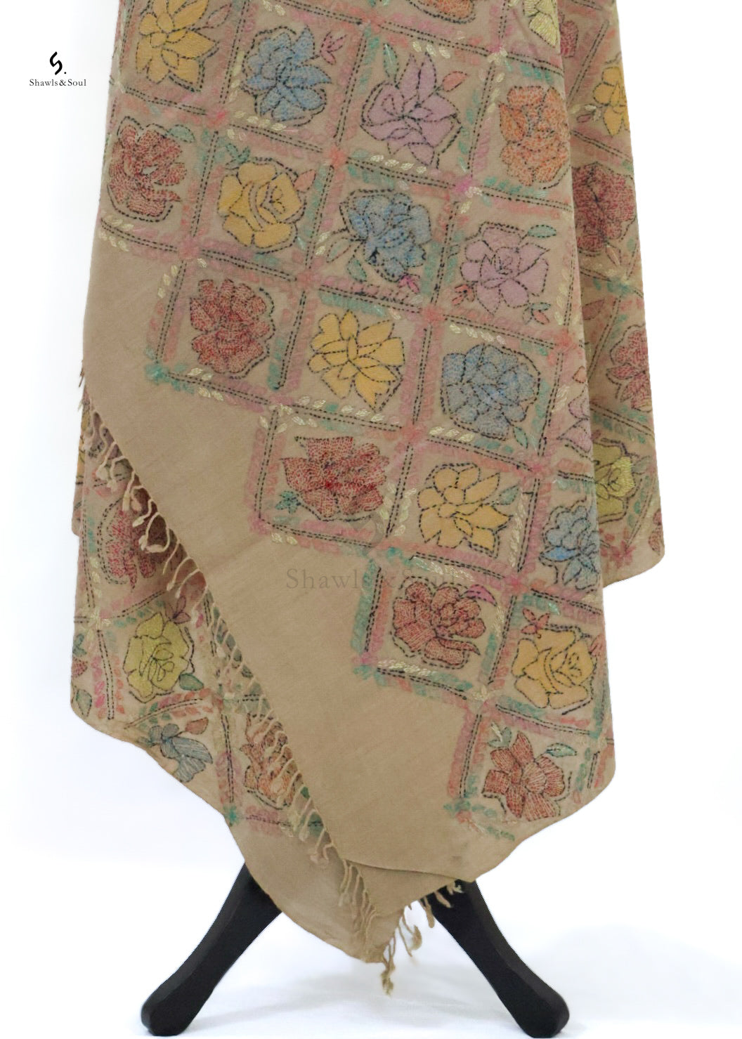 Experience the elegance of Timeless Threads, a woolen shawl exquisitely adorned with heavy Kacha embroidery. Its rich texture and intricate craftsmanship offer warmth and a luxurious statement piece for refined wardrobes. Perfect for those who appreciate timeless sophistication and artisanal detail.