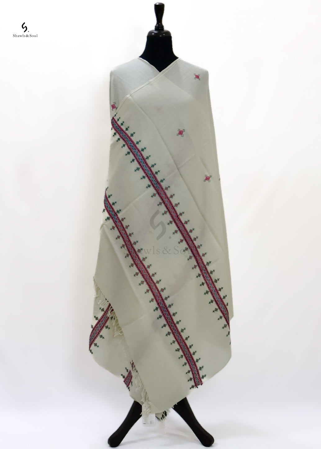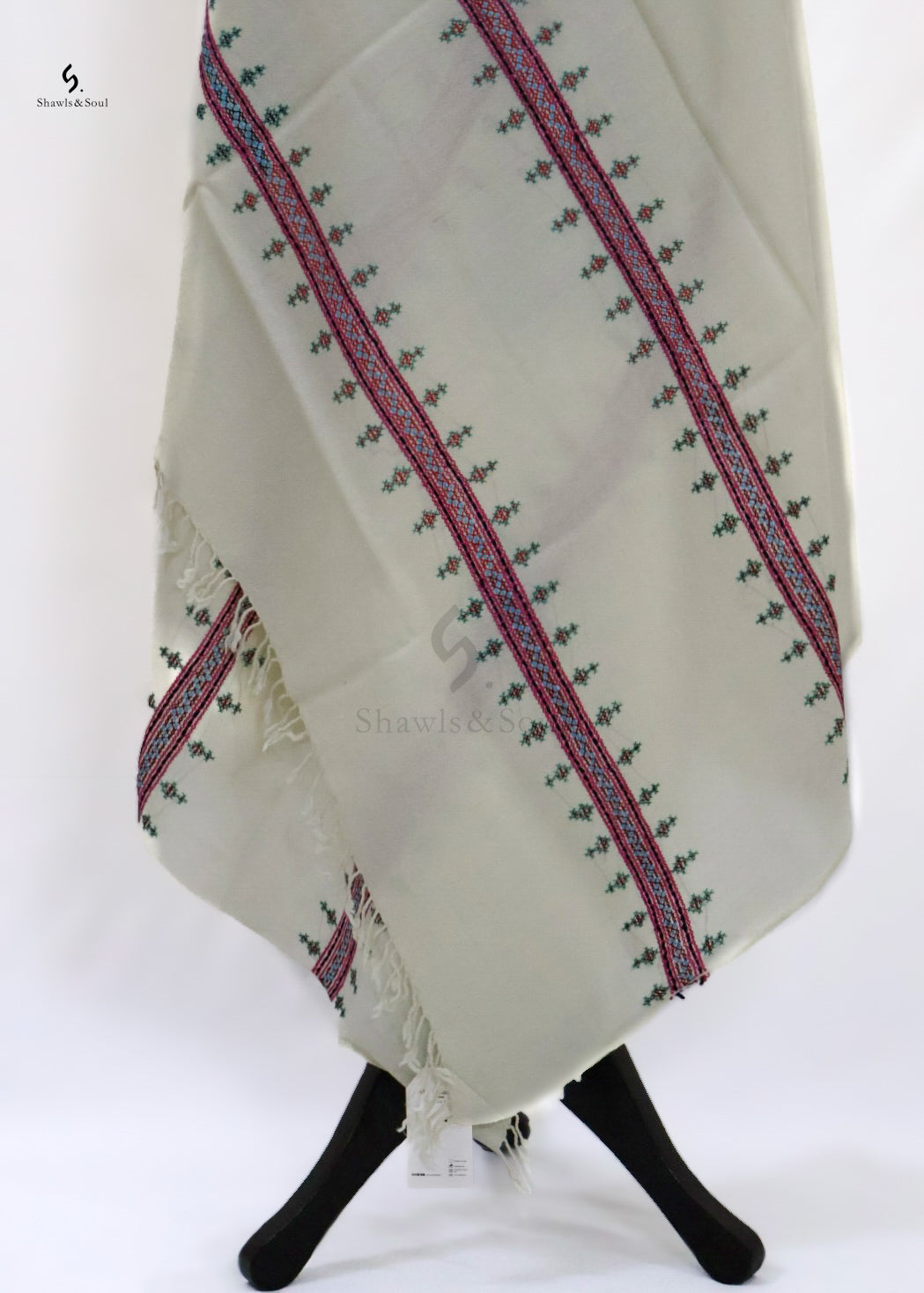 Amber Shawl showcases exquisite cross stitch embroidery delicately crafted with premium wool. This elegant piece blends artistry and quality, offering a beautiful design that enhances your collection without exceeding your budget. Ideal for those who appreciate refined craftsmanship and timeless appeal.