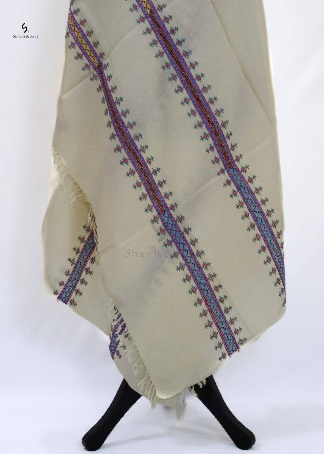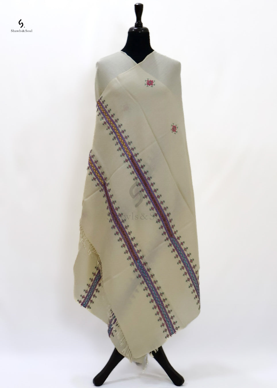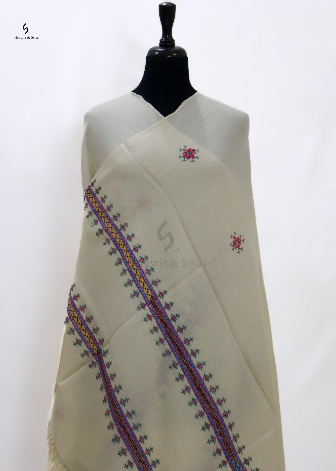 Amber Shawl showcases exquisite cross stitch embroidery delicately crafted with premium wool. This elegant piece blends artistry and quality, offering a beautiful design that enhances your collection without exceeding your budget. Ideal for those who appreciate refined craftsmanship and timeless appeal.