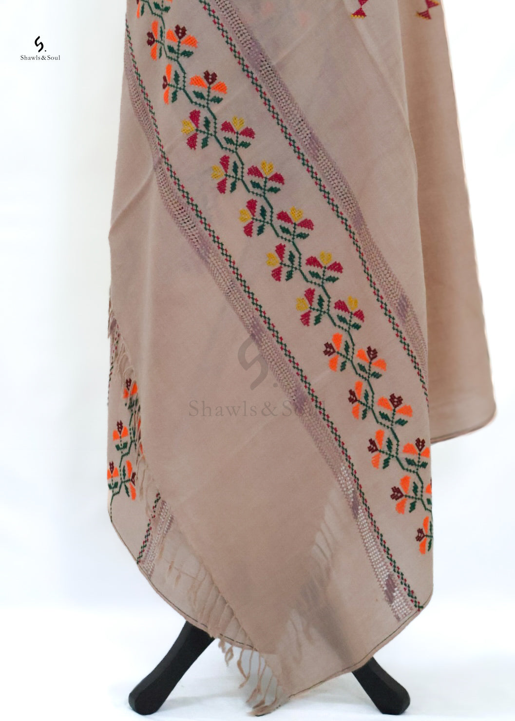 Experience timeless elegance with the Zeenat winter shawl, featuring exquisite cross stitch and Taarkashi embroidery. Crafted from premium wool, this shawl offers exceptional warmth while showcasing intricate artistry. Its refined design complements sophisticated wardrobes, making it a luxurious choice for cold seasons.